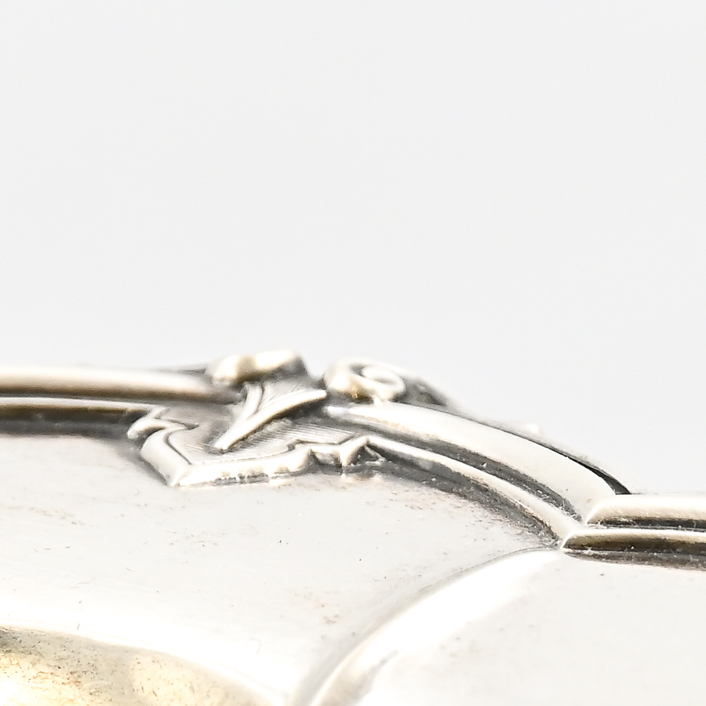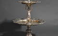 Centrotavola d'argento a due piatti con porta candela in stile Rococò della seconda metà dell'800.