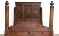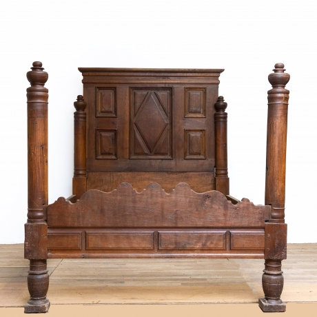 Raro letto piemontese in noce a colonne tornite risalente al XVII secolo. In buone condizioni.