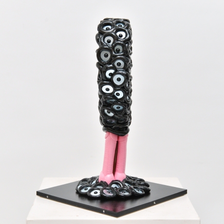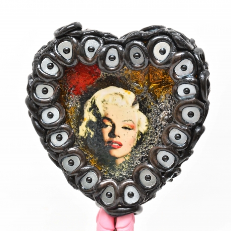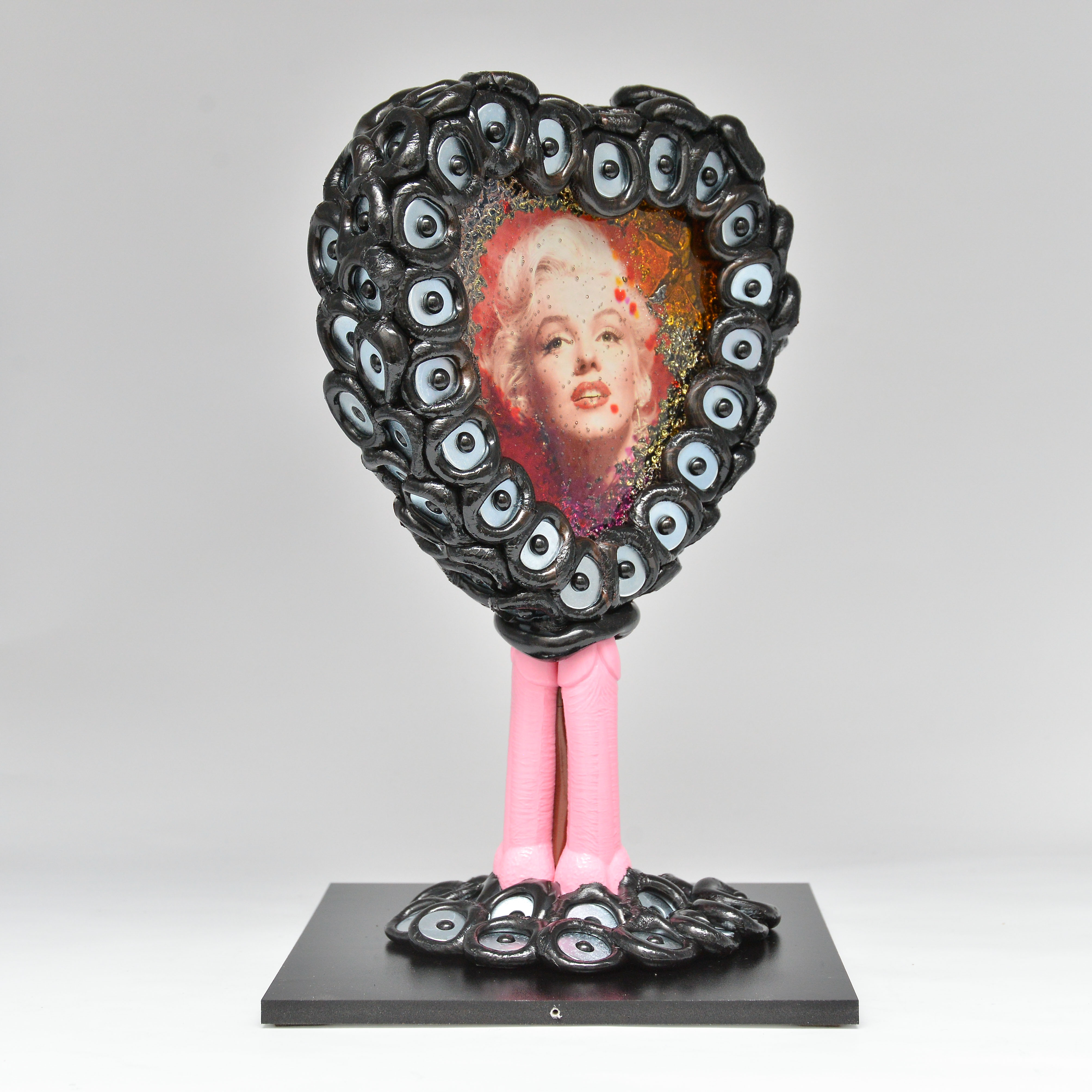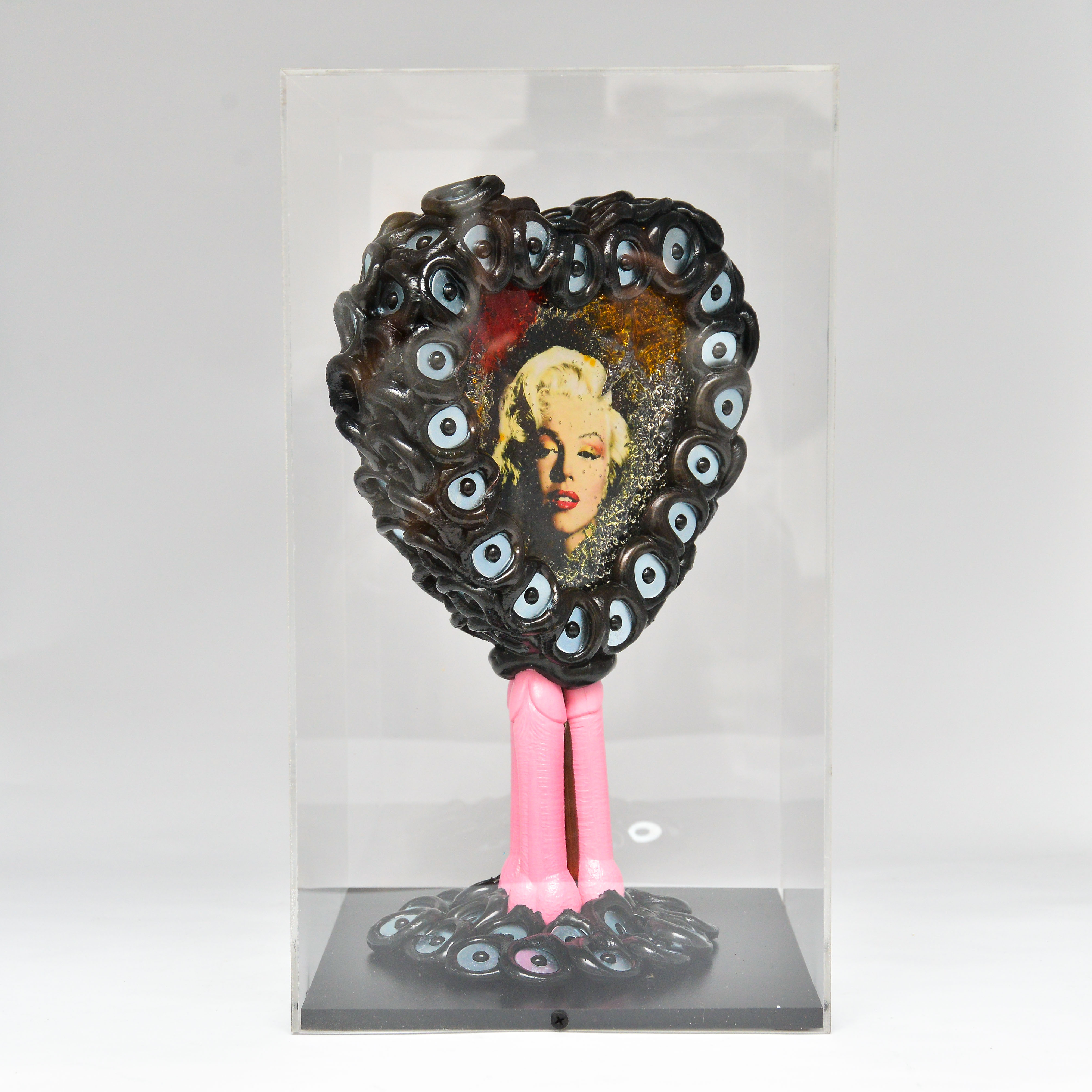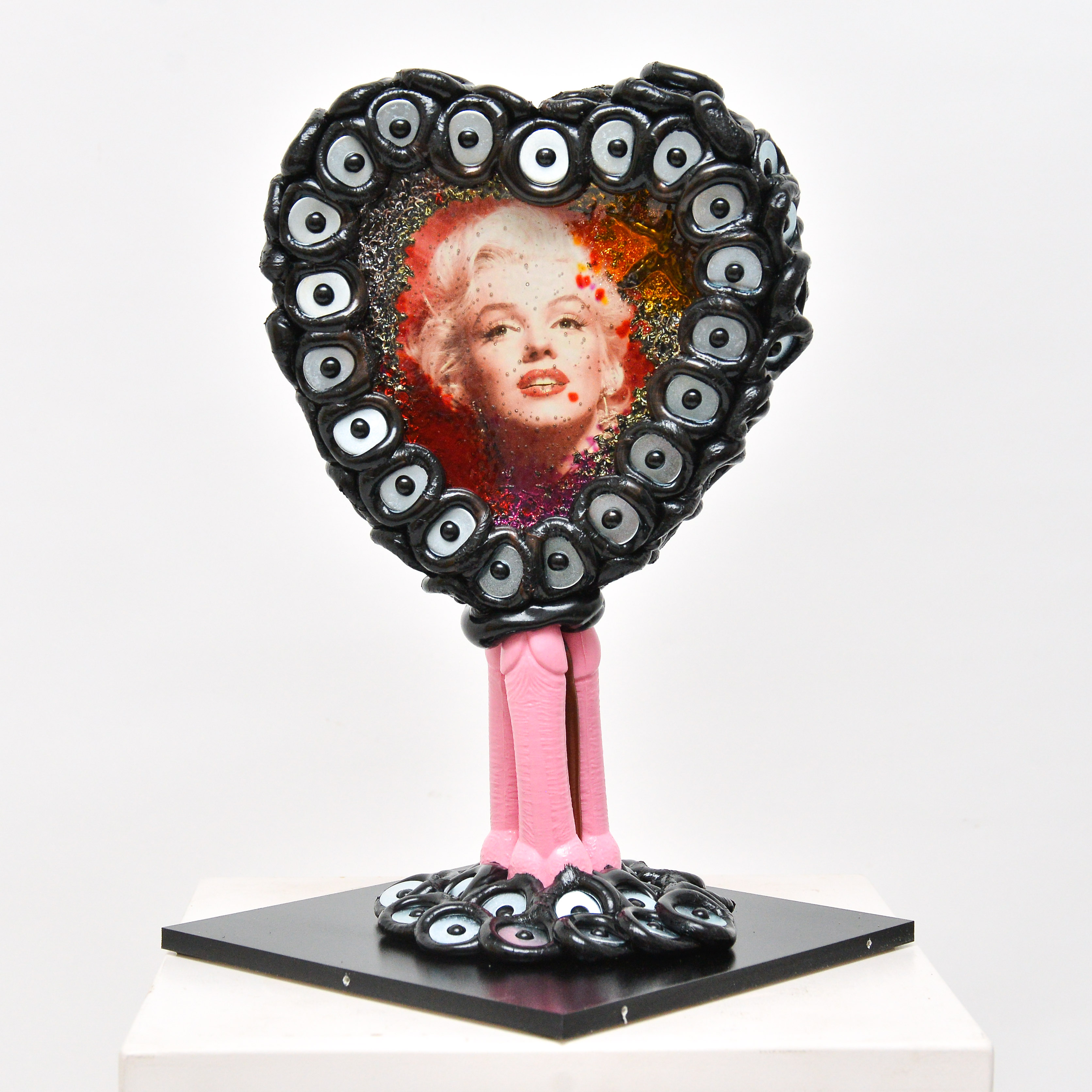 Marylin Sexy Girl, Omar Ronda, 2011, scultura di plastica fusa con inserti di rondelle. Con basamento e teca.