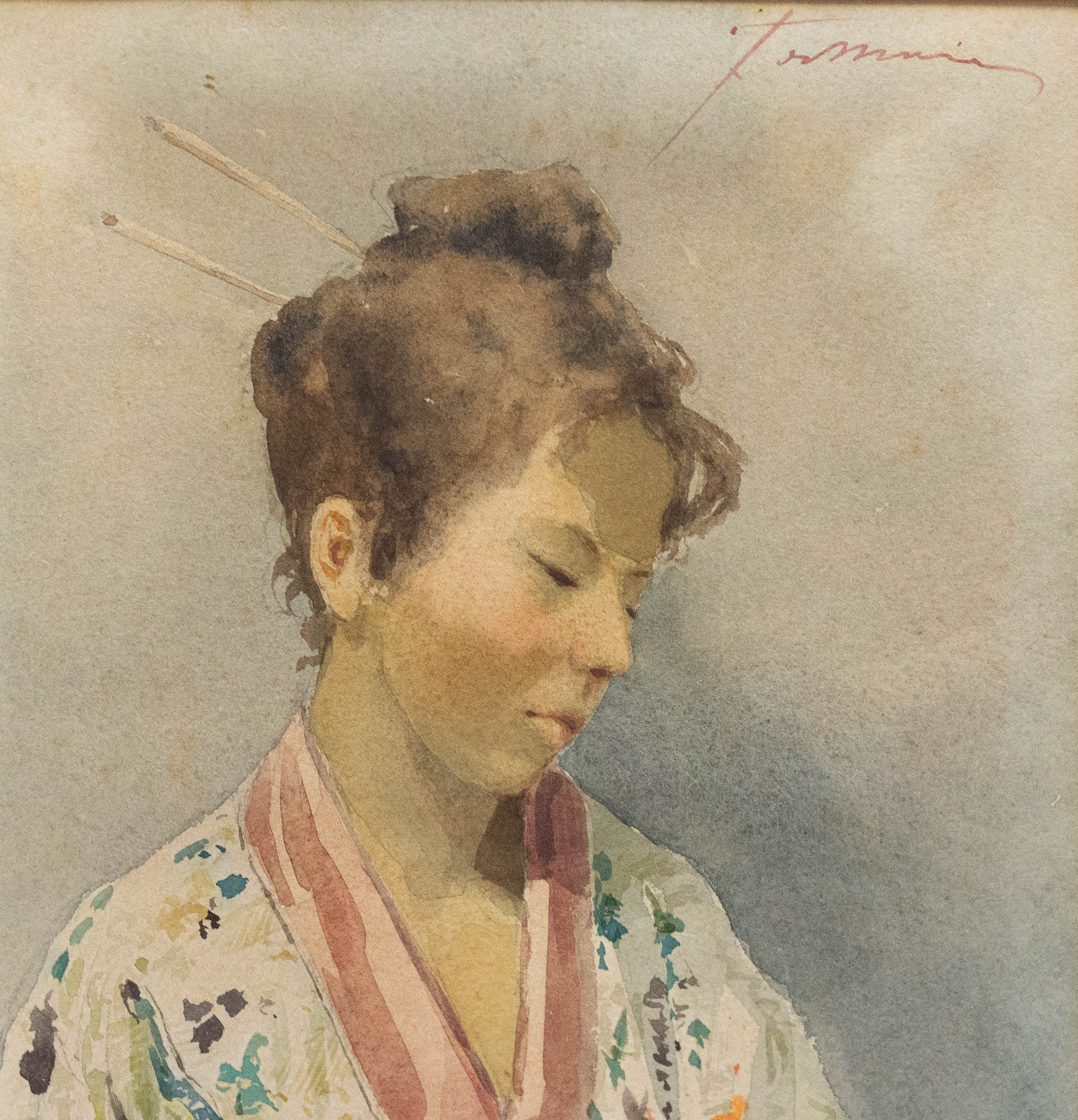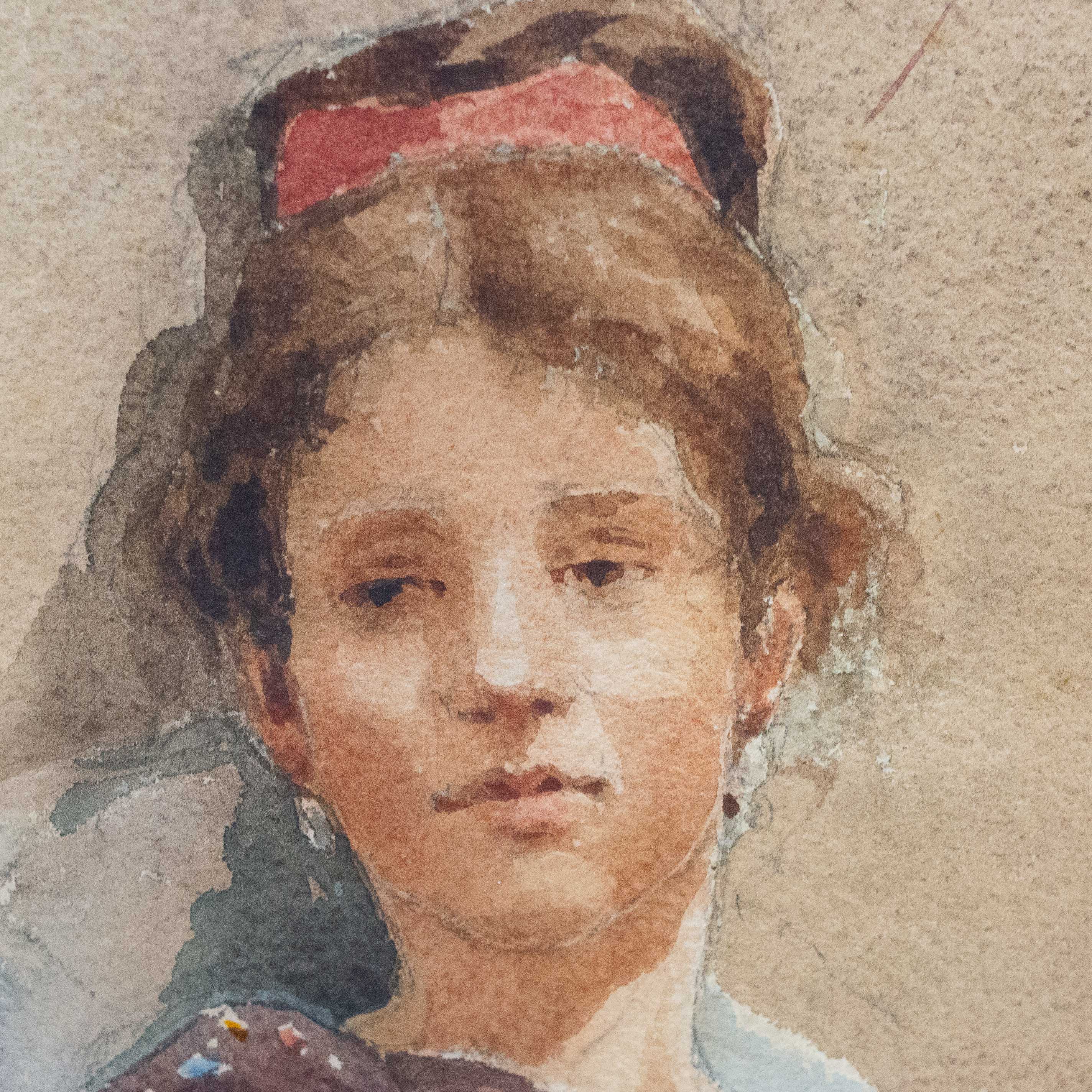 Coppia di Acquerelli su carta, "Ritratti di figure femminili, firmati, Epoca Fine '800