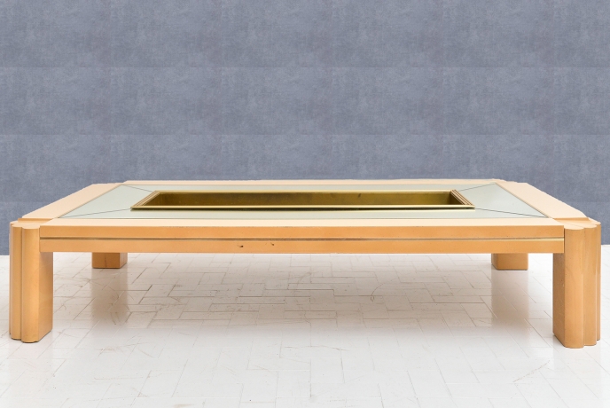 Alain Delon cocktail table for Maison Jansen dating back to the 70s. Materials: wood, mirrors and brass.