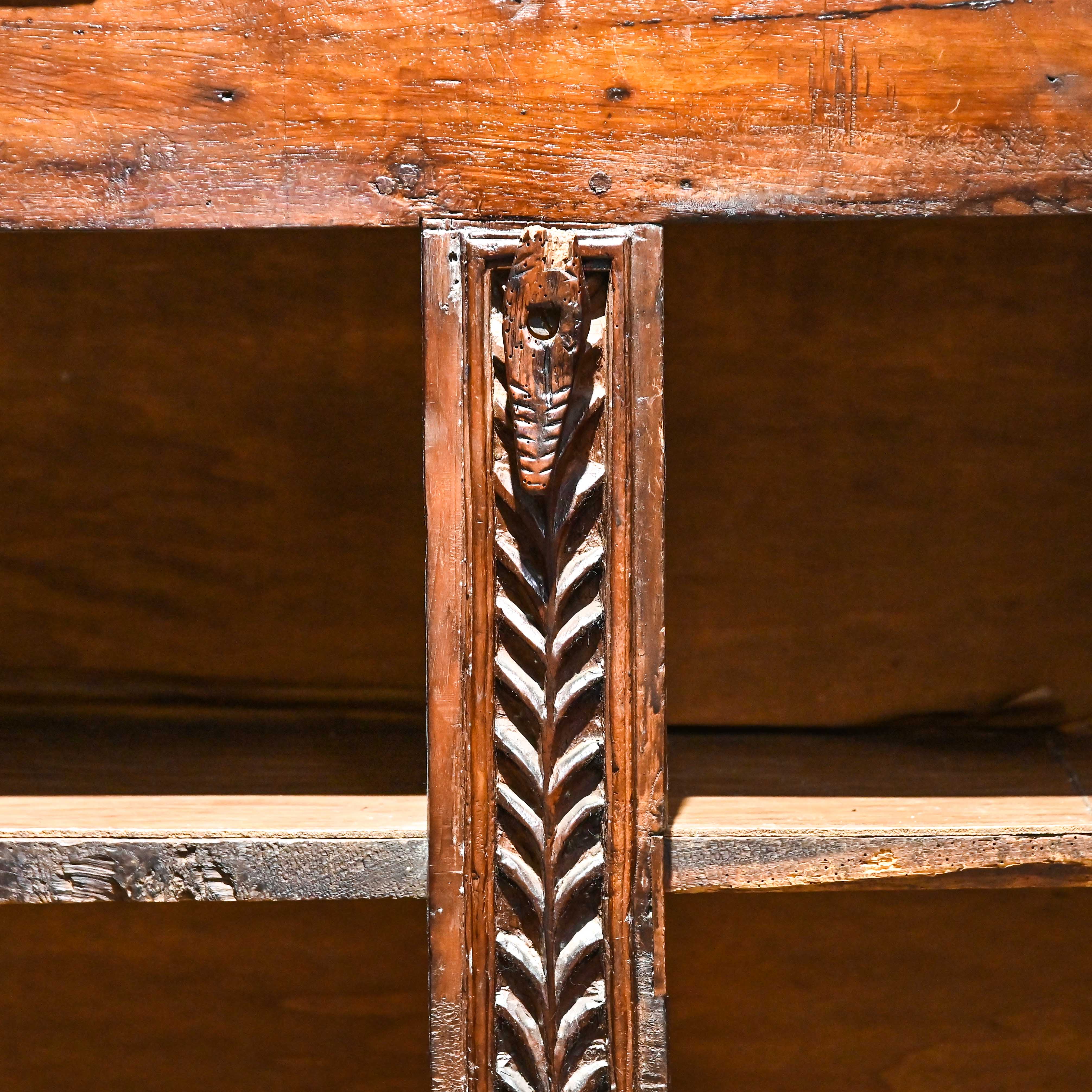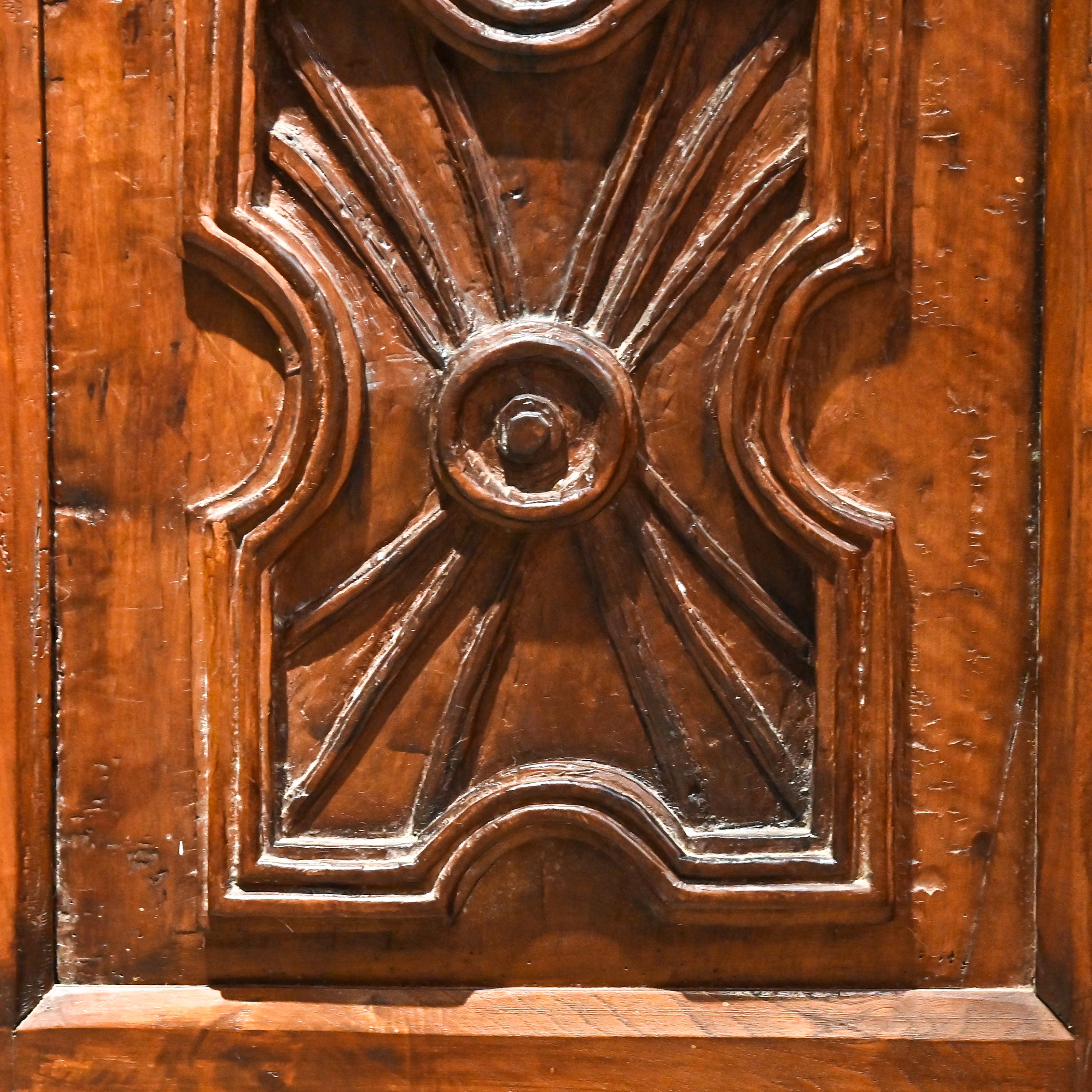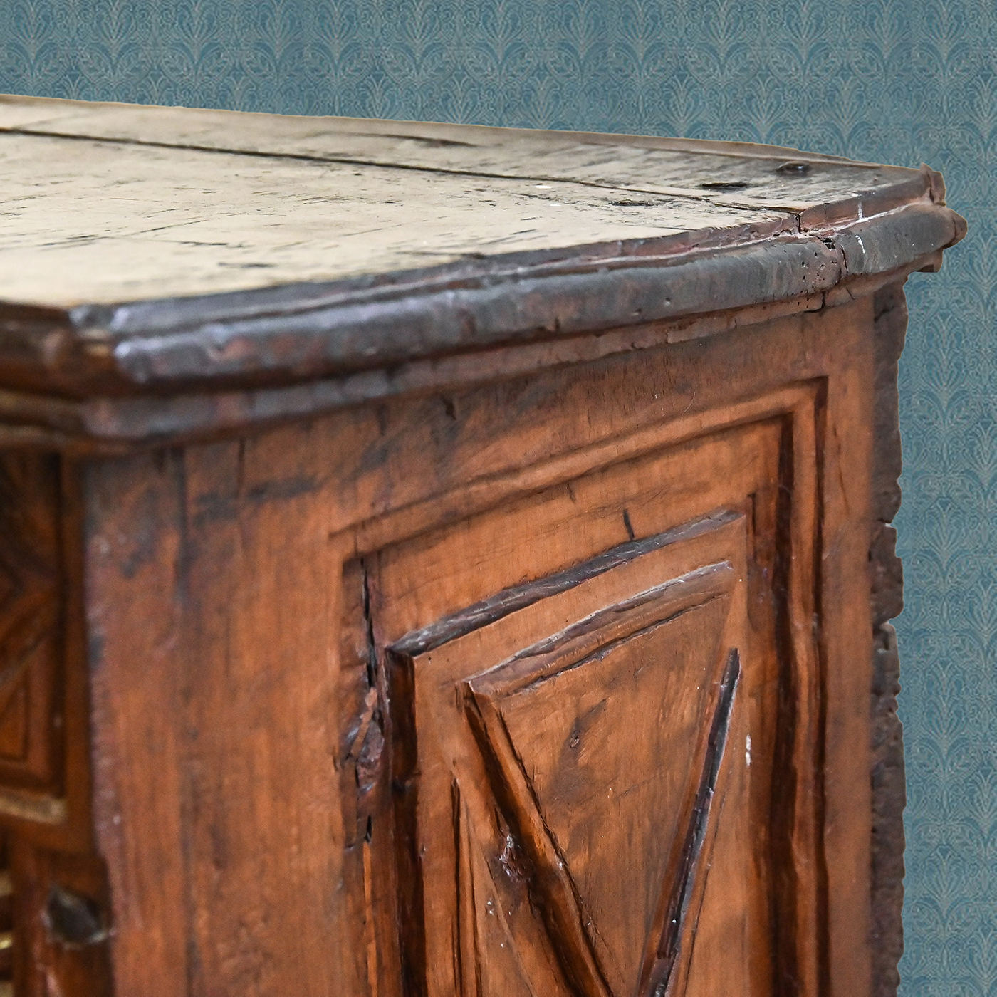 Antica credenza in noce, risalente alla fine del '500/ inizi '600. Completamente intagliata, costituita da tre cassetti e due ante.