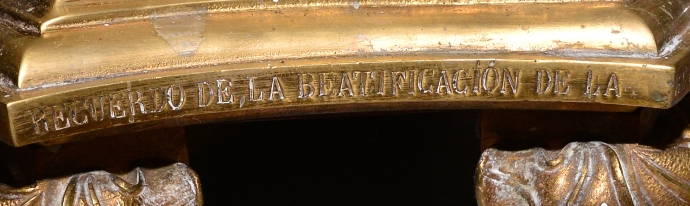 Grande candeliere in bronzo dorato, datato 24 maggio 1908. Sulla base reca una scritta che commemora la beatificazione di Maddalena Sofia Barat (Joigny, 12 dicembre 1779 – Parigi, 25 maggio 1865) è stata una religiosa francese, fondatrice della Società del Sacro Cuore di Gesù. Data della beatificazione: 24 maggio 1908. (Altezza sagoma m 1.66).