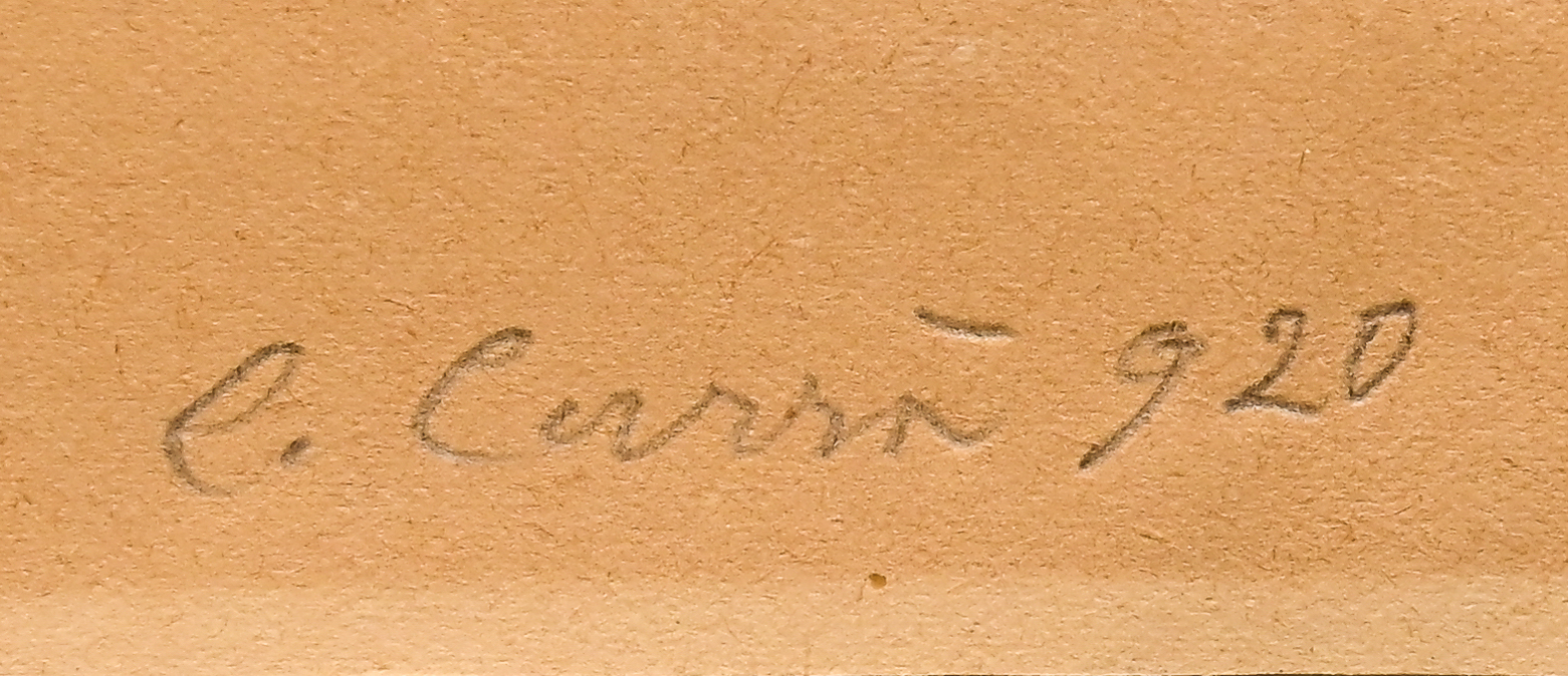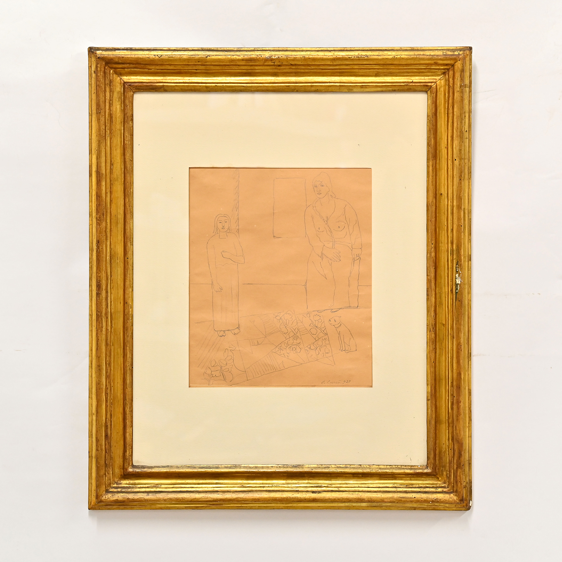 "Donne sul tappeto", disegno a matita originale di Carlo Carrà, del 1920, in bella cornice settecentesca.