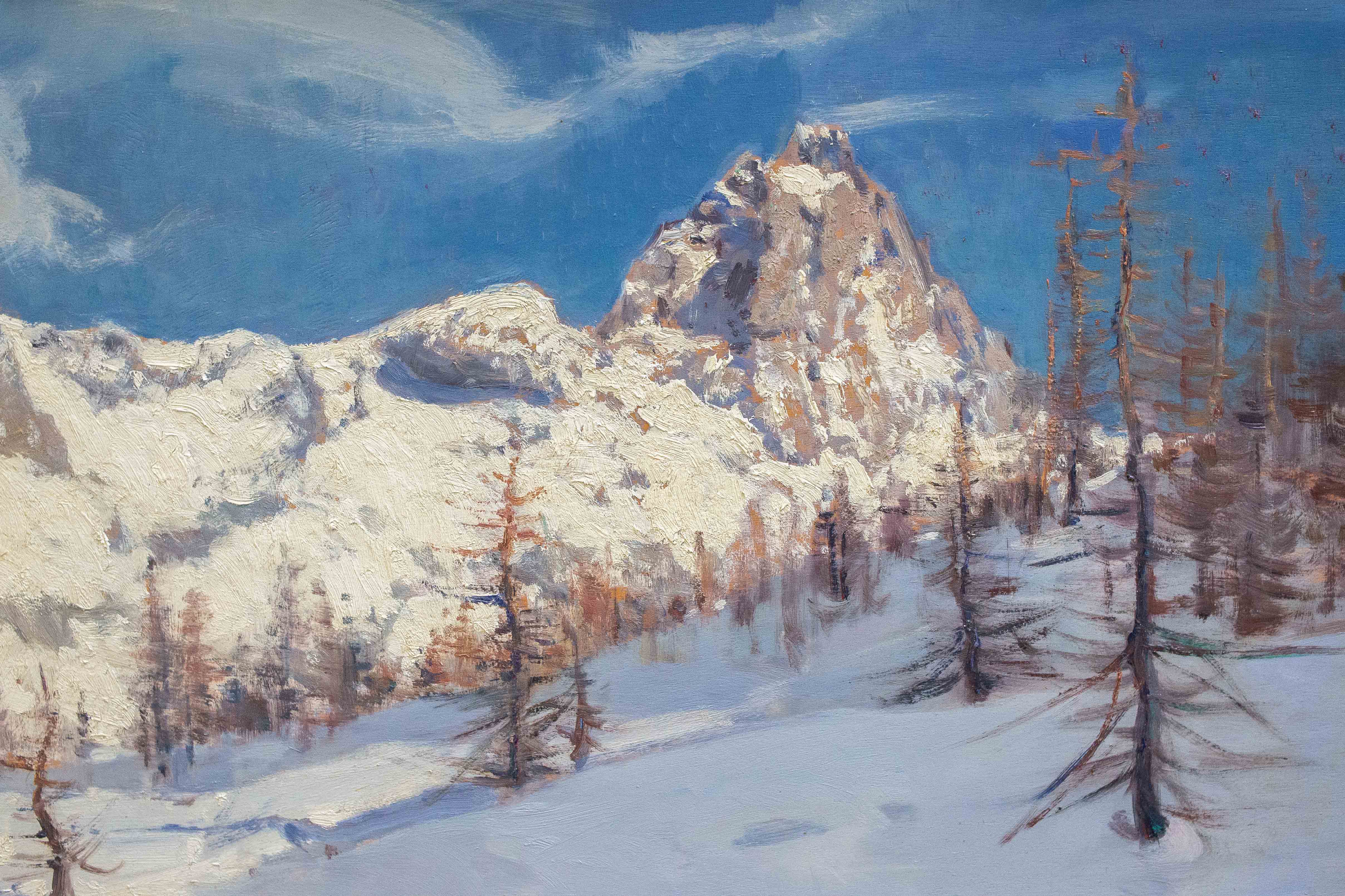 Olio su tavola, di Carlo Musso, "Mattino a Cervinia", Anni '50