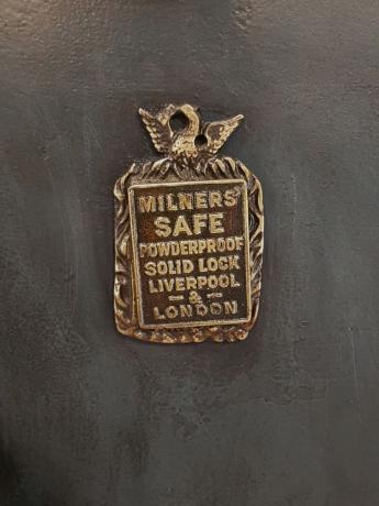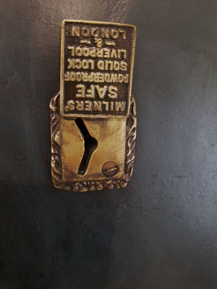 Cassaforte vintage inglese, Milners' Patent originale, con chiave funzionante e cassetto al suo interno. In acciaio, peso 200 kg circa. Utilizzabille anche come arredo.