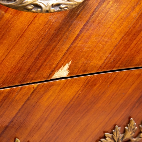 Cassettone Napoleone III lastronato con applicazioni in bronzo. Composta da due grandi cassetti.