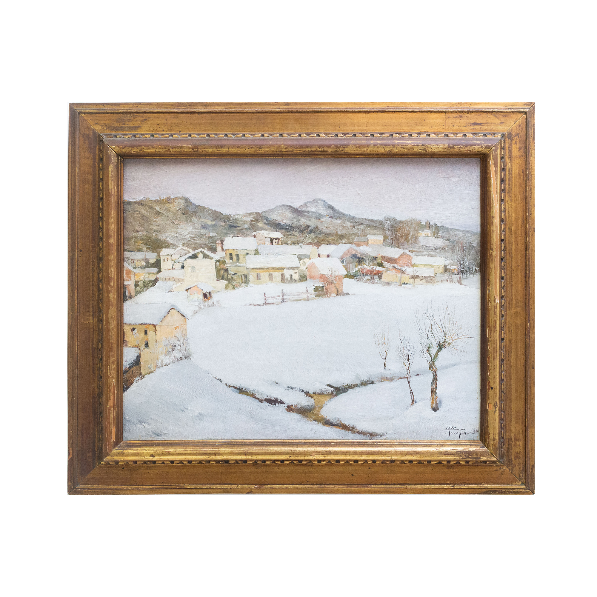 Celso Tempia, olio su tavola, "Paesaggio innevato", 1941, firmato