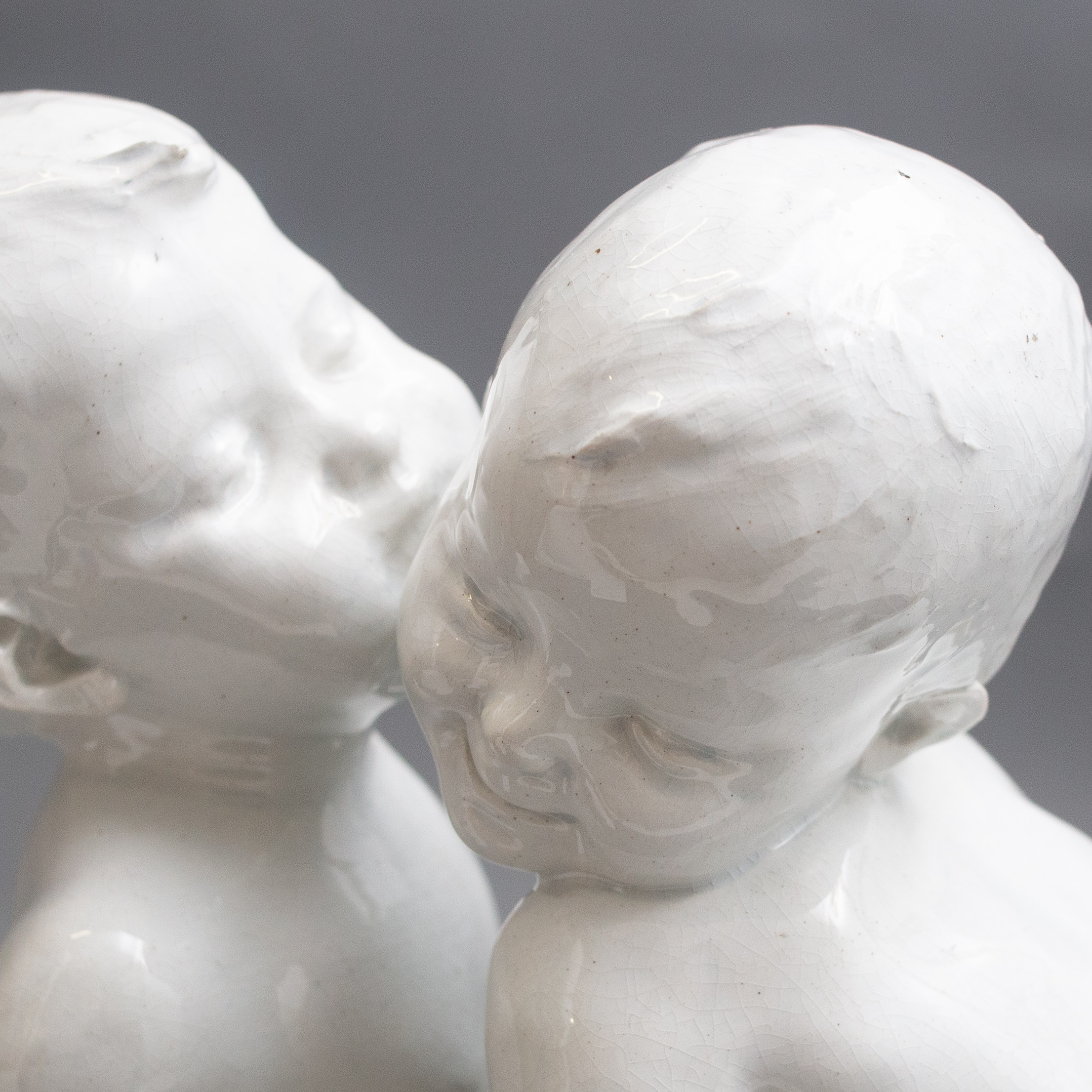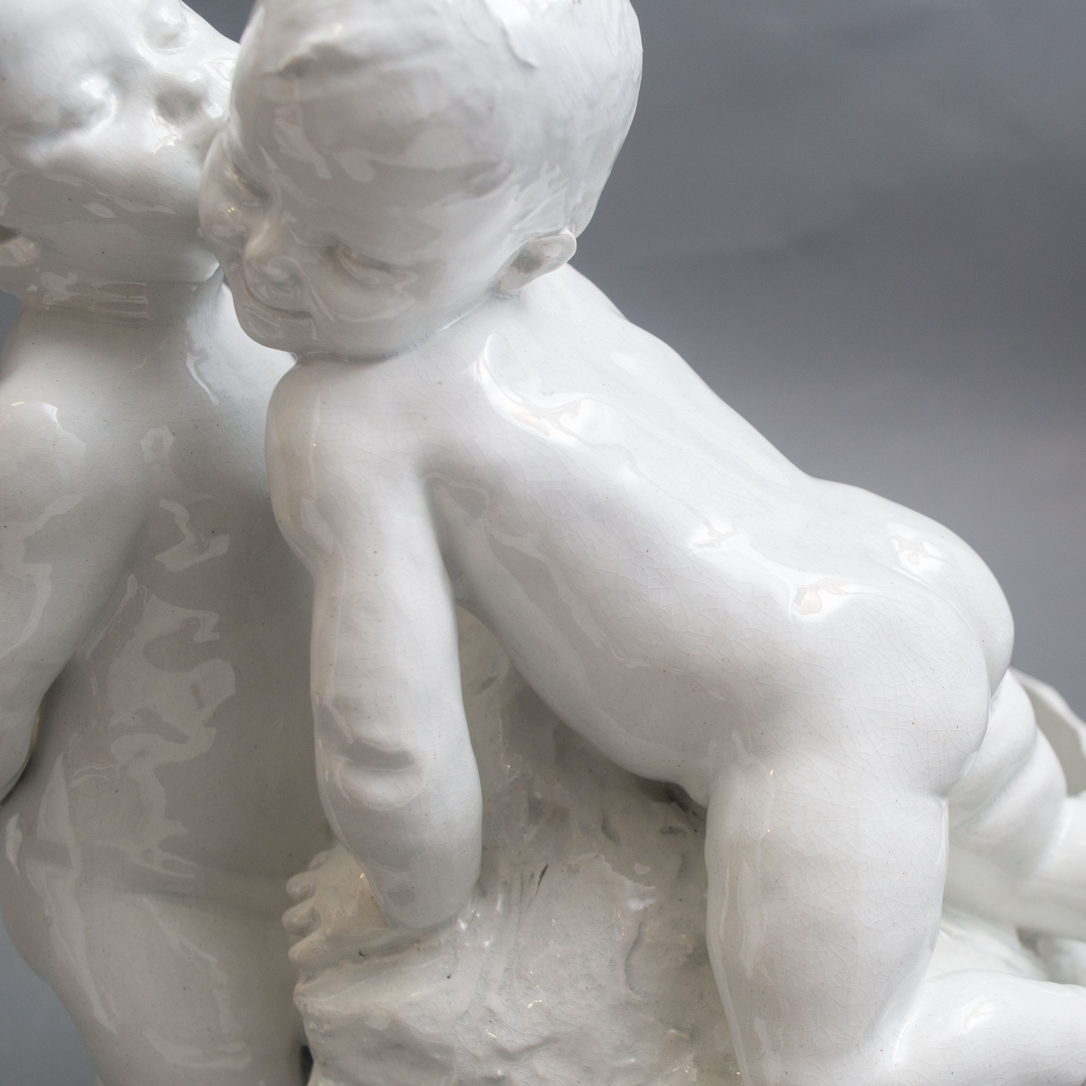 Scultura in ceramica smaltata bianca "I bambini", Primi del '900