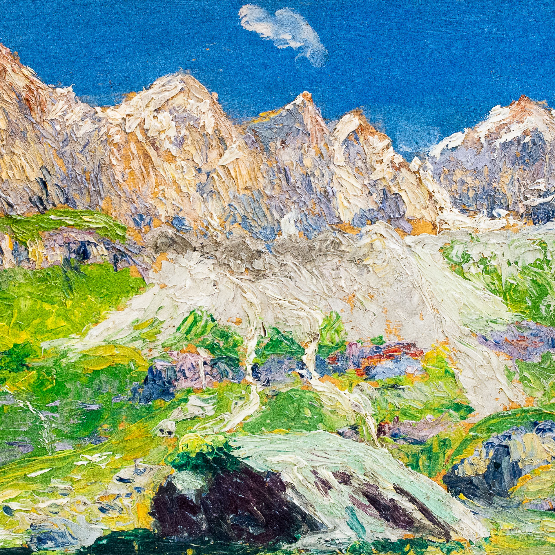 Diventato amico del pittore Giacomo Grosso a Torino nel 1901, si orienta con successo verso il genere del ritratto, accantonando la tecnica divisionista. Pur prediligendo ancora le vedute d’alta montagna, amplia i propri soggetti impegnandosi anche nelle marine e nelle nature morte, utilizzando una tecnica che con accenti divisionisti accosta una stesura ad impasto e a larghi tocchi di colore, risentendo tra il 1920 e il 1930 anche dell’influenza del movimento artistico Novecento. Nella fase tarda ritorna ad un naturalismo più illustrativo.