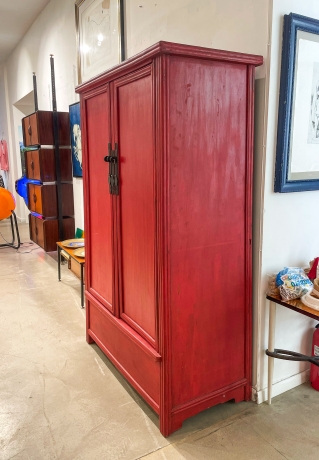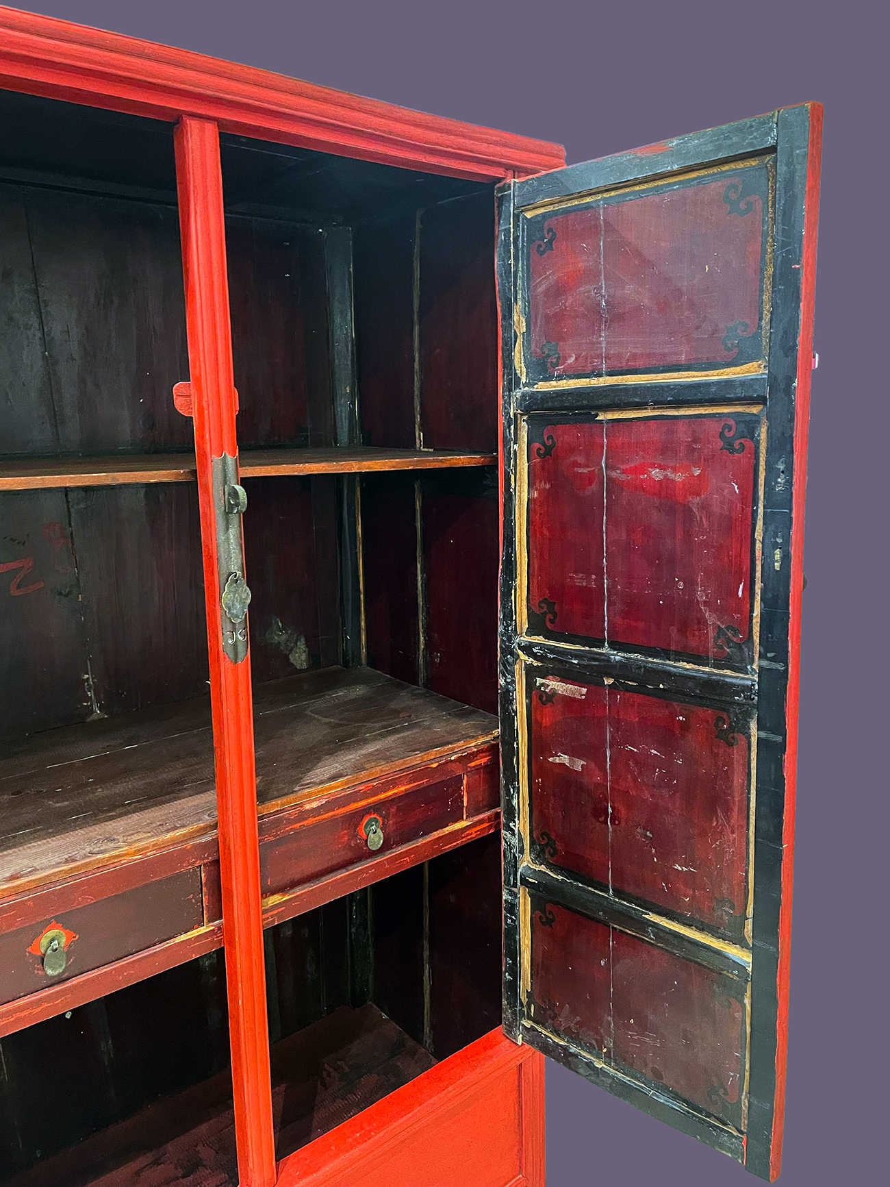 Armadio Cinese in Legno Laccato Rosso, Primi del '900