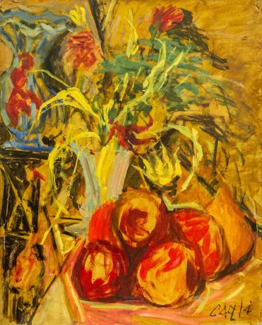 Dipinto olio su cartone di Corrado Cagli (Ancona, 23 febbraio 1910 – Roma, 28 marzo 1976), firmato in basso a destra dall'artista. Registrato all'archivio Cagli con autentica n° 00043