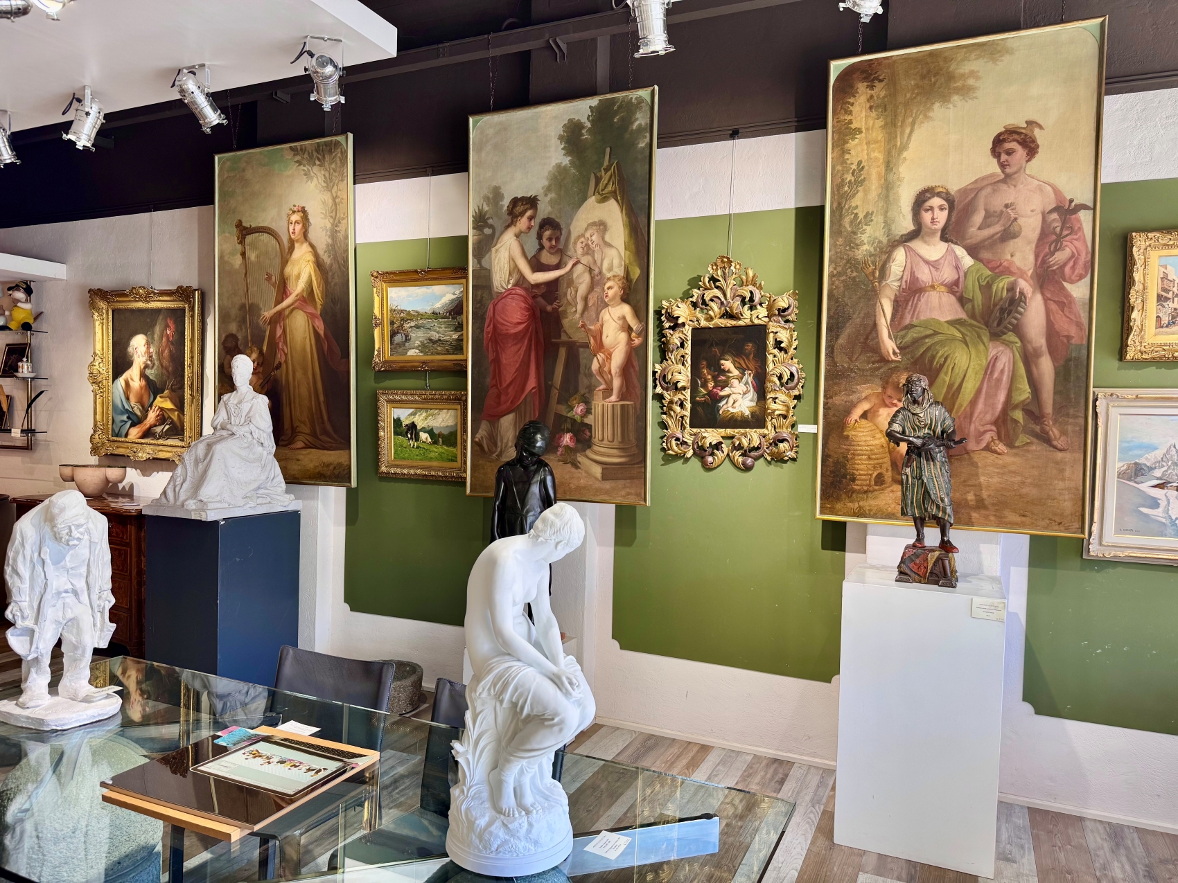 Per concezione, dimensioni e qualità esecutiva, le tre tele erano verosimilmente destinate a un contesto di rappresentanza — saloni nobiliari o ambienti istituzionali — dove il tema delle Arti assumeva un valore celebrativo e culturale.