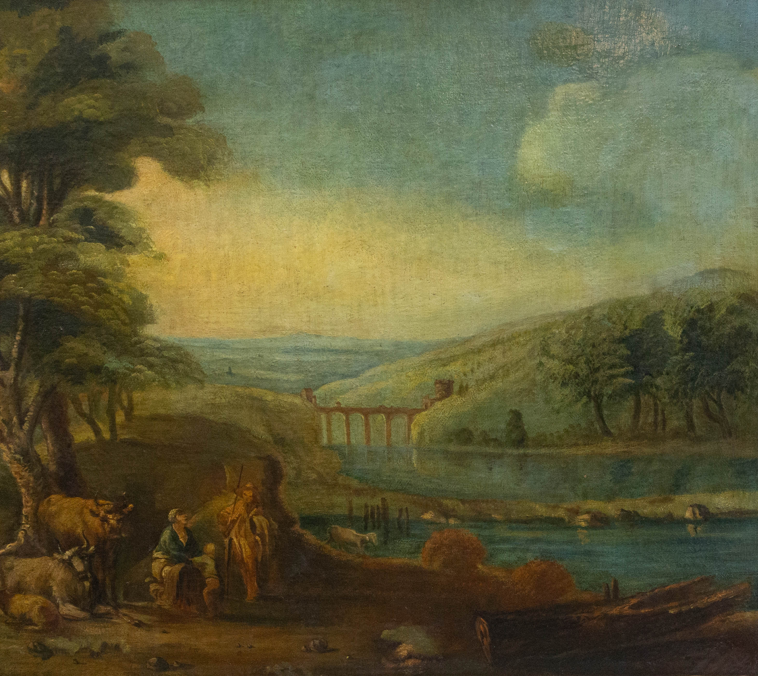 Paesaggio bucolico fluviale con viandanti, Epoca '700
