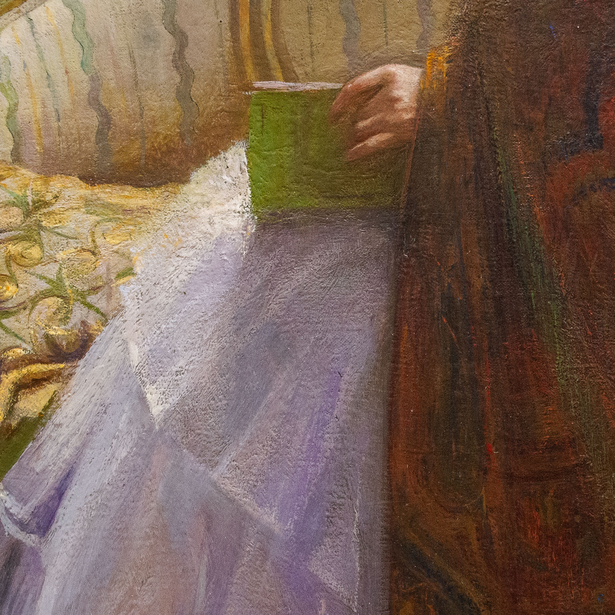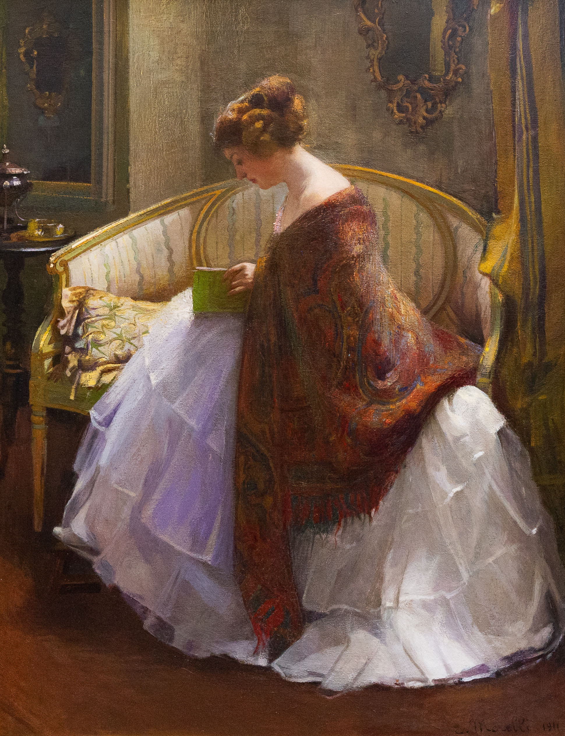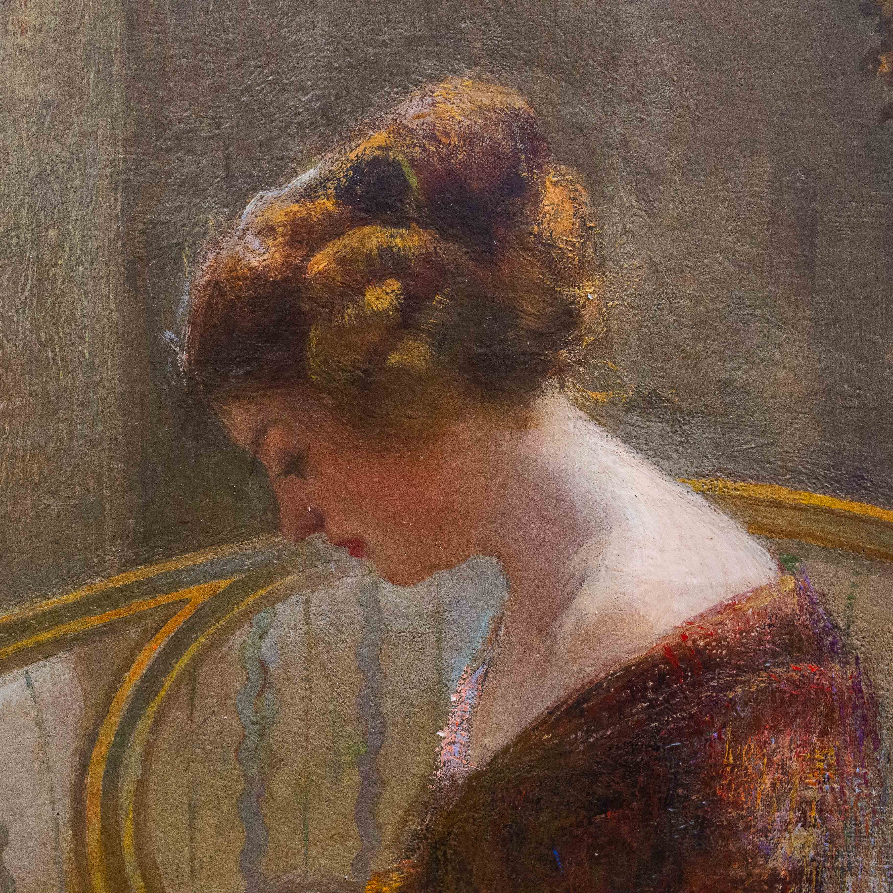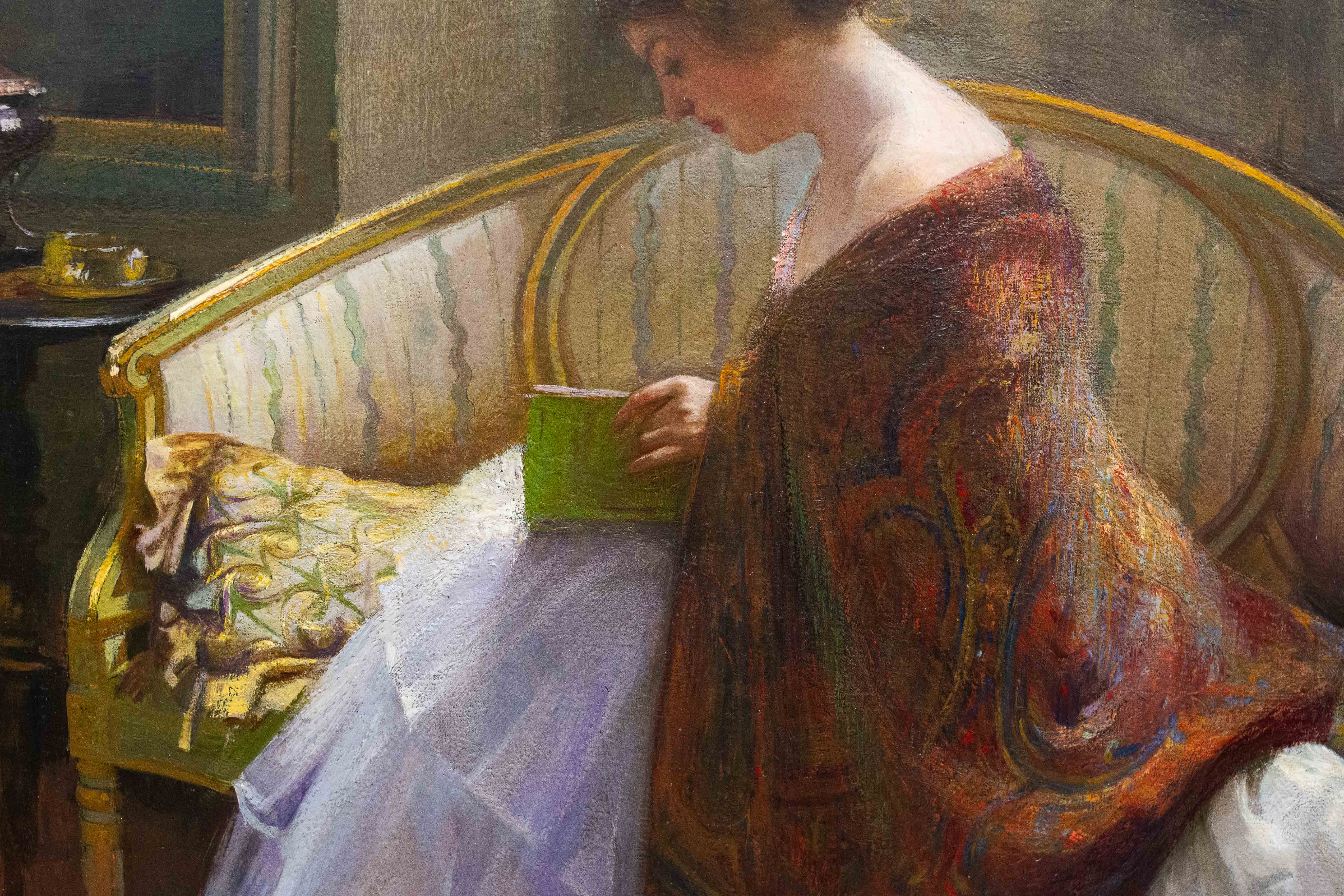 Olio su tela, di Ennio Morelli (Torino 1874-1941), "Dama che legge", 1911