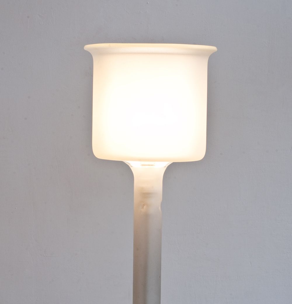 In vetro satinato e base in metallo, disegnate da Piero Castiglioni e Roberto Menghi