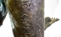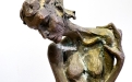 La patina scura, con leggere variazioni cromatiche, accentua i contrasti di luce e valorizza l’andamento delle forme.