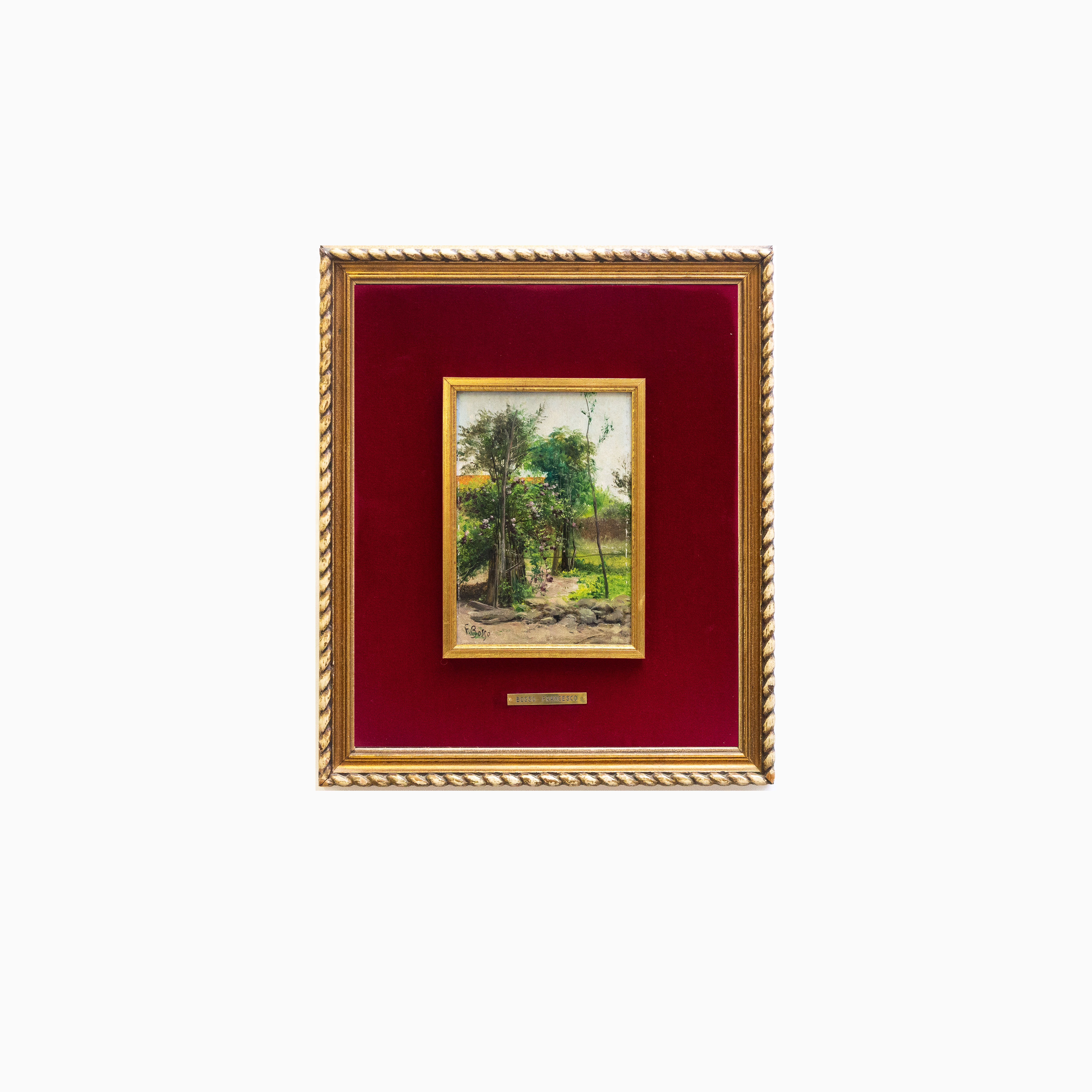 Francesco Bosso, olio su cartone, firmato, "Nel Giardino", 1917