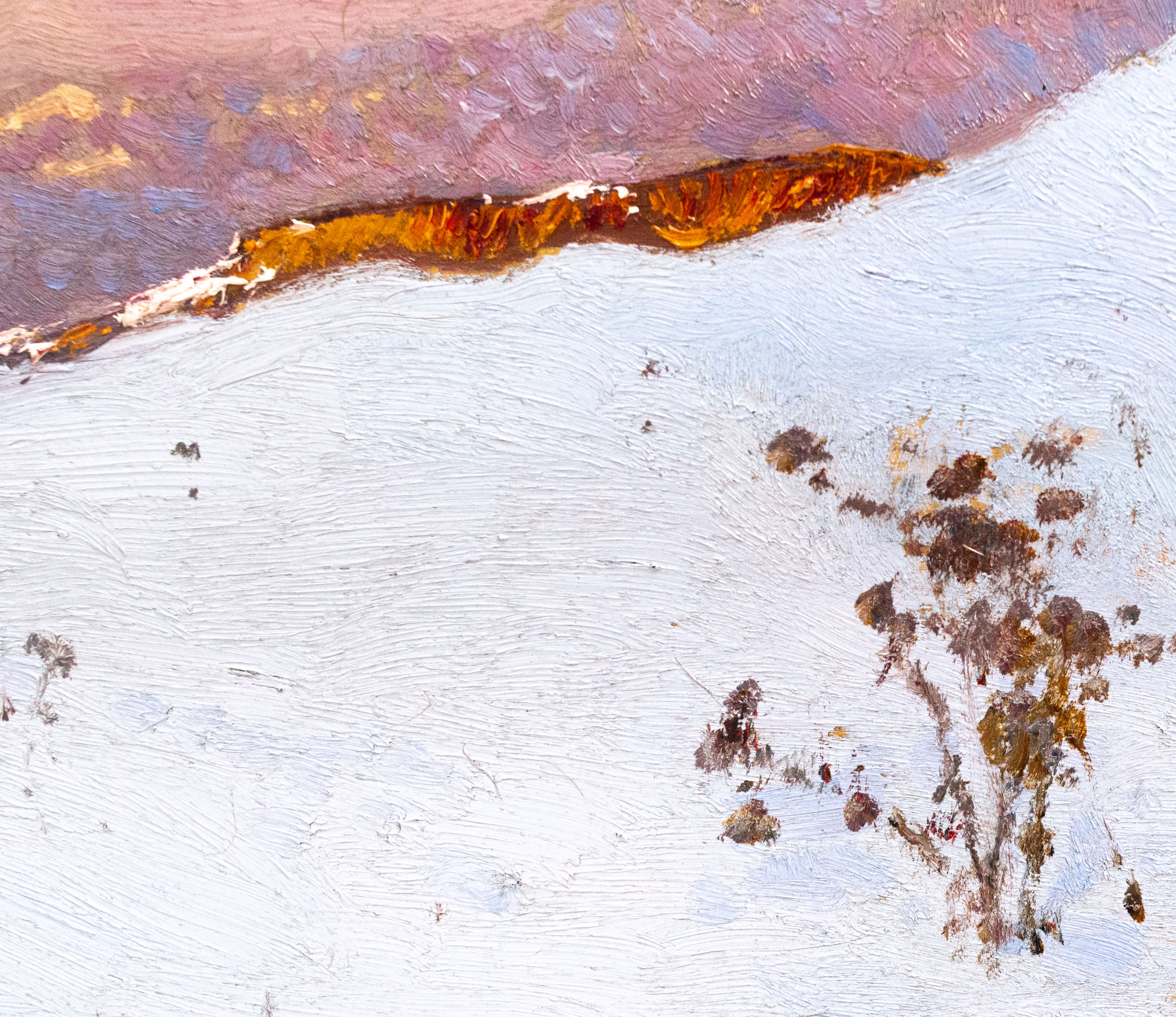 "Riflessi sulla neve", di Giuseppe Bozzalla, olio su tavoletta, firmato e datato in basso a destra, 1923