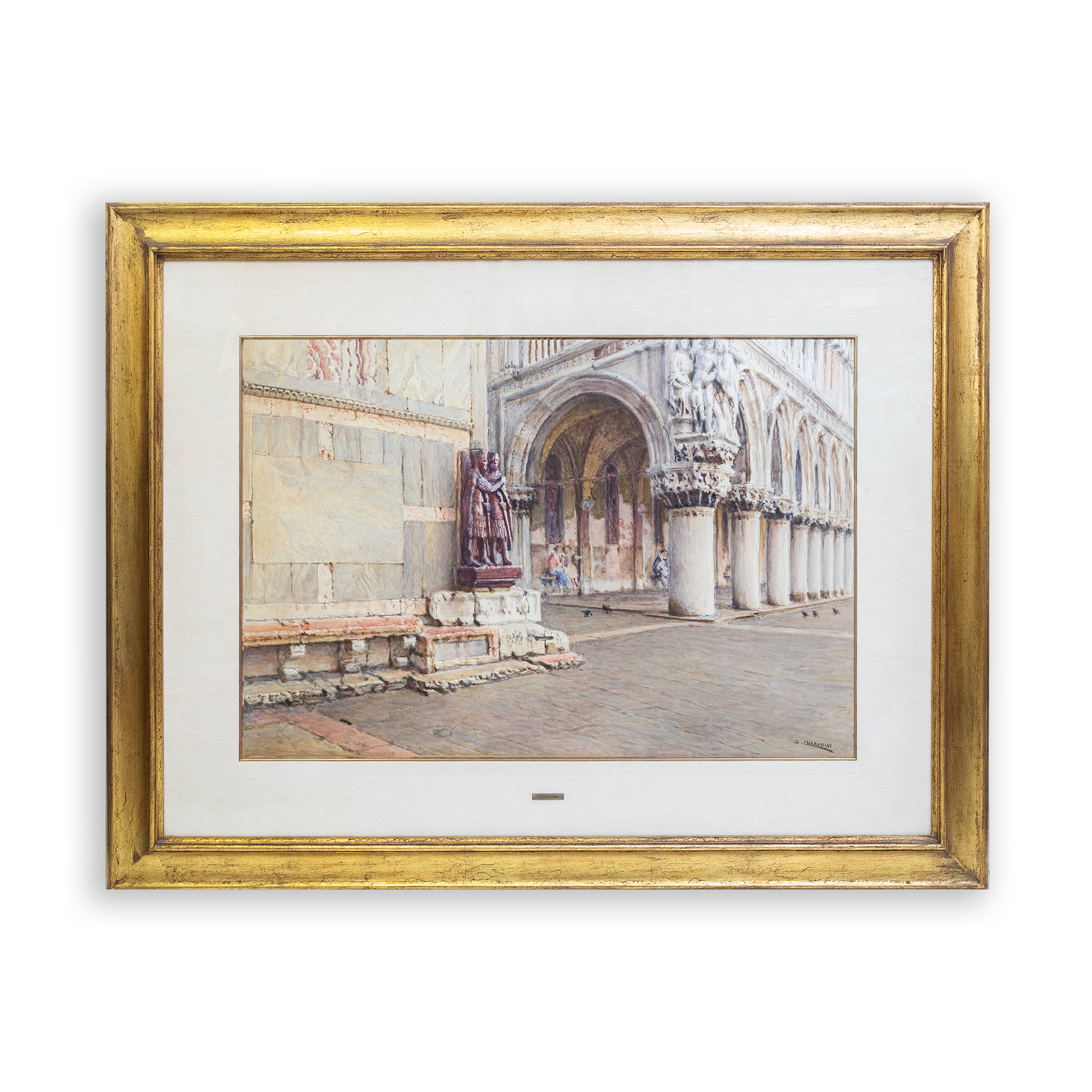 Giuseppe Cherubini, nato ad Ancona e formatosi a Roma, dal 1902 si trasferì a Venezia, dove lavorò sino alla morte eseguendo diverse opere nelle sue chiese e nei suoi teatri (La Fenice). Partecipò alla Biennale di Venezia nel 1905 e nel 1926. Espose in città quali Londra, Berlino, Monaco di Baviera, Venezia, Roma e Monza. Nel 1947 Venezia gli ha riconosciuto la cittadinanza onoraria. Prevalenti nella sua produzione gli scorci veneziani e scene di genere.