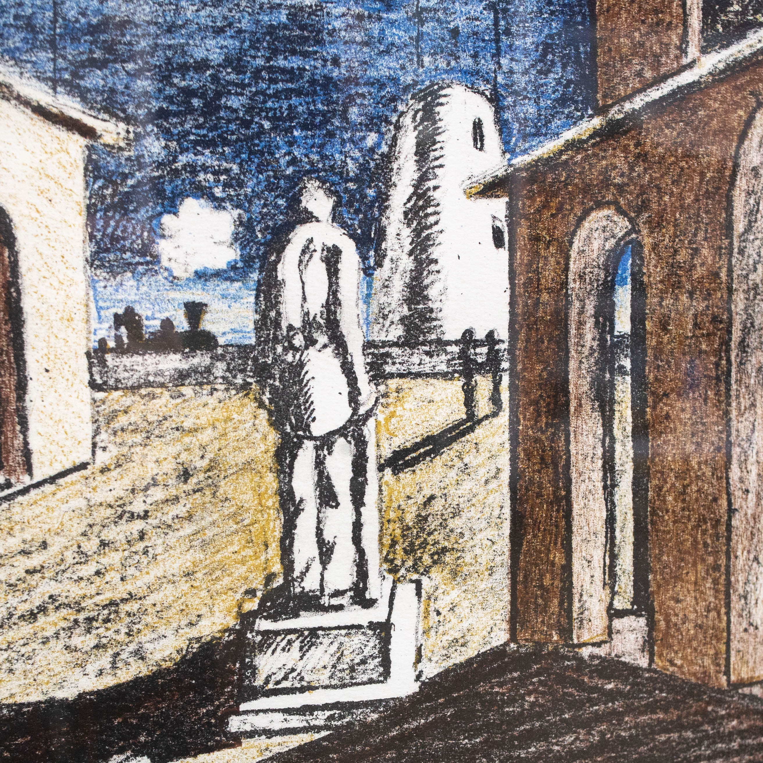 Litografia a colori, di Giorgio De Chirico, "Solitudine dell'uomo Politico", 1966, firmato