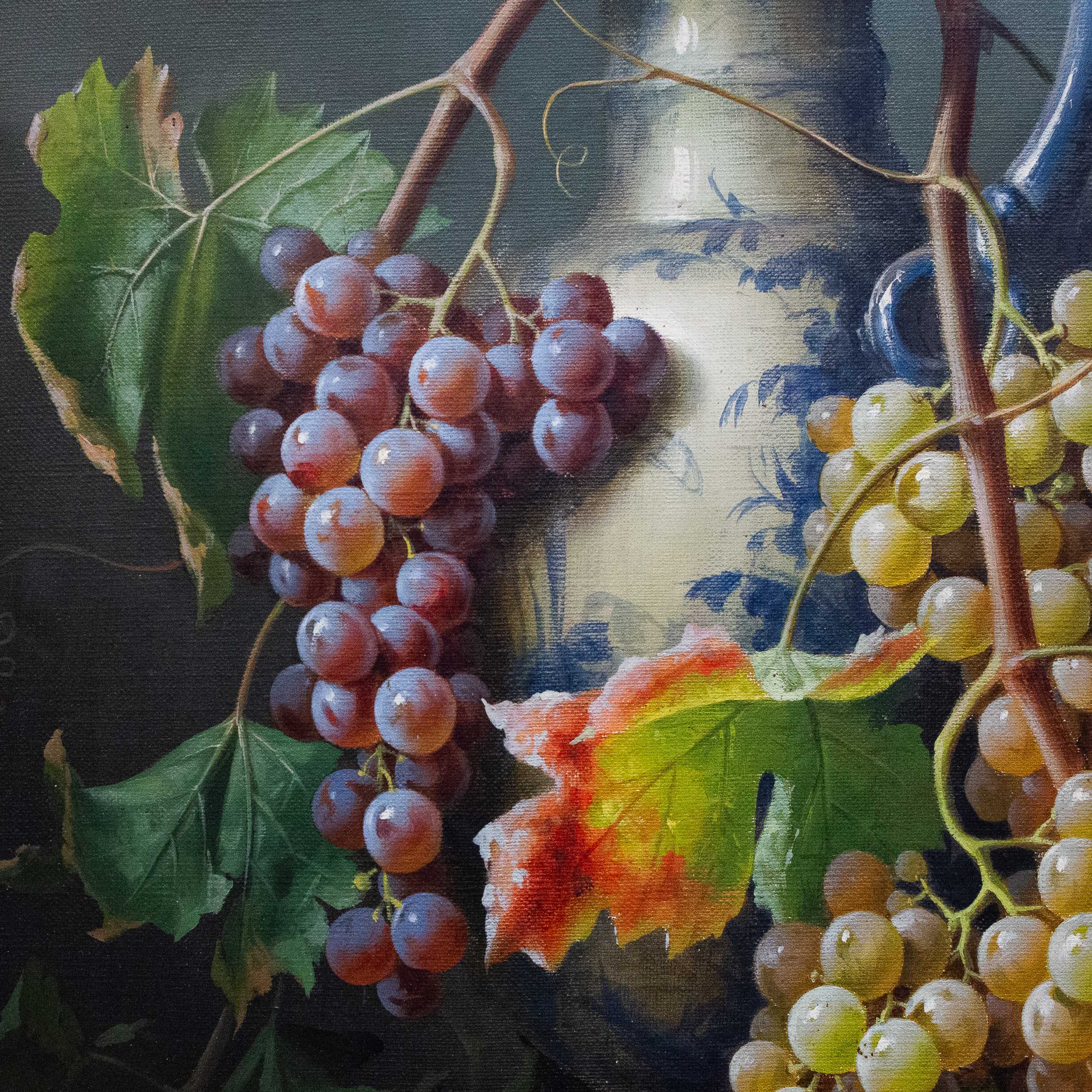Bellissimo dipinto ad olio su tela del famoso pittore italiano Giuseppe Falchetti, raffigurante una natura morta con frutta.