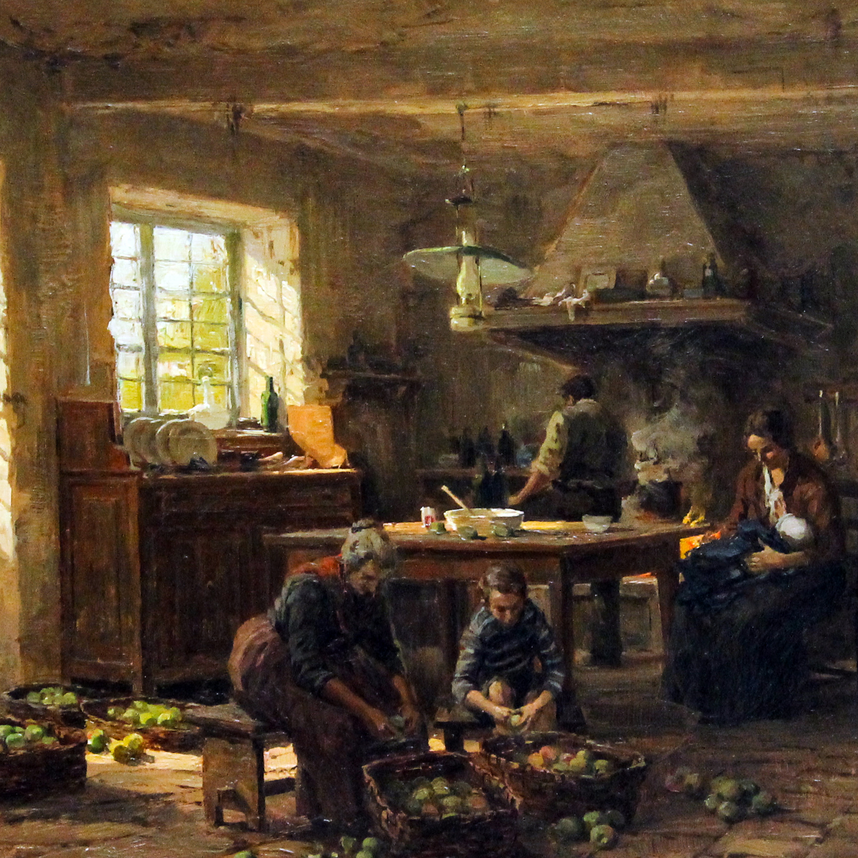 “Interno”, di Giuseppe Gheduzzi, olio su compensato, firmato in basso a sinistra, Anni '30