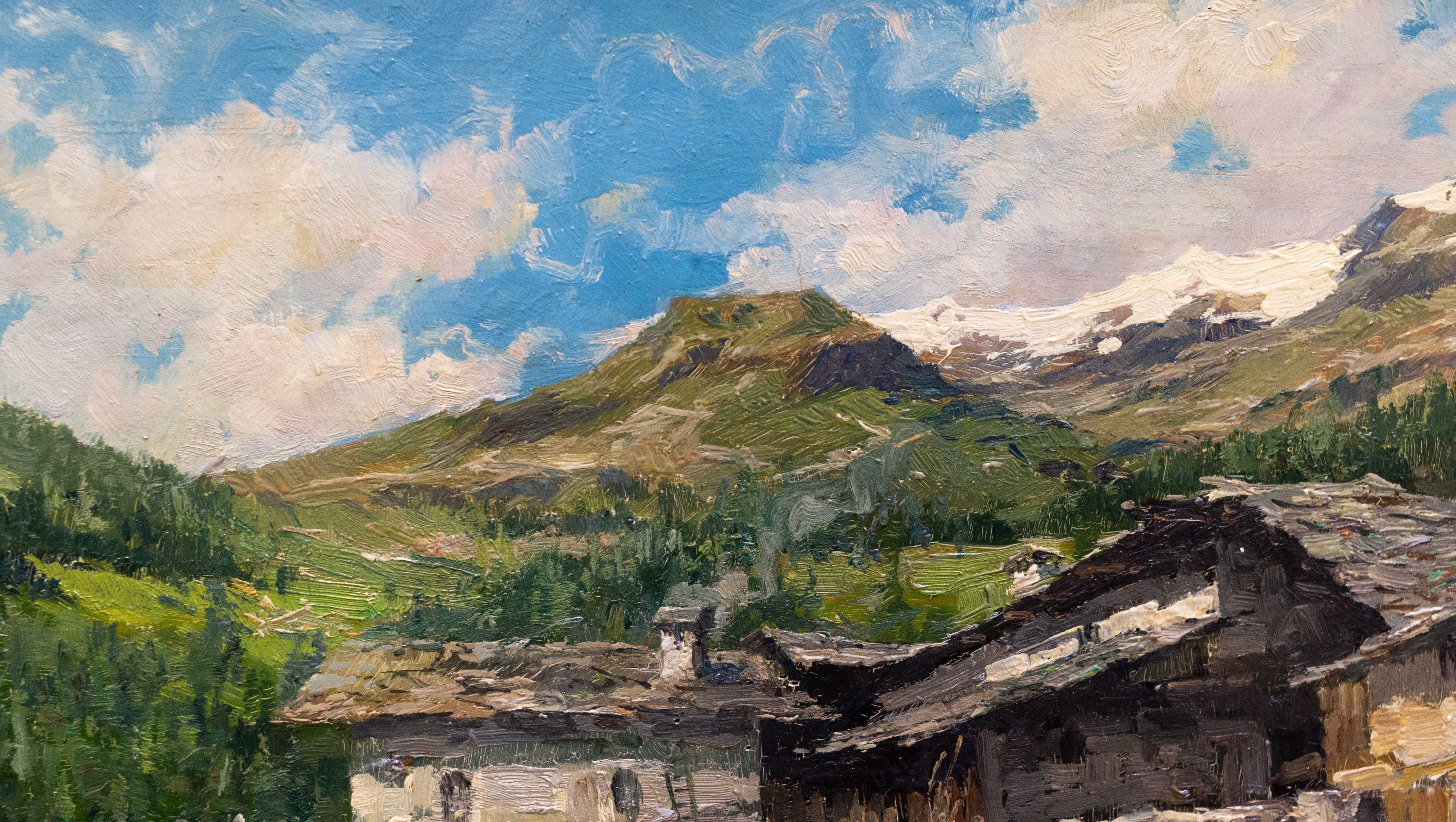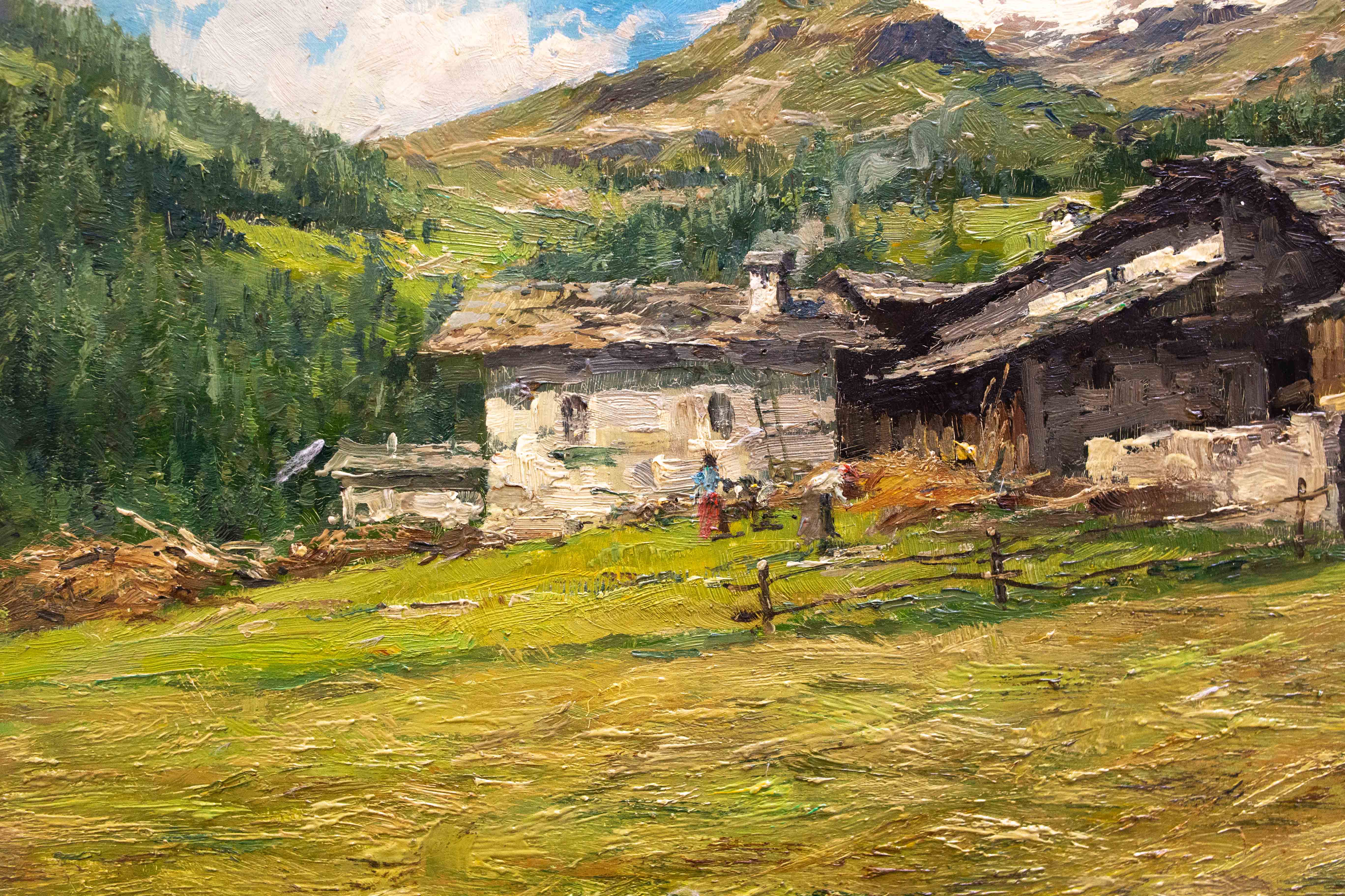 Bel dipinto ad olio su tavole del pittore Giuseppe Gheduzzi, nel dipinto si nota una grande abilità del pittore nel raffiugare un tipico paesaggio montano italiano