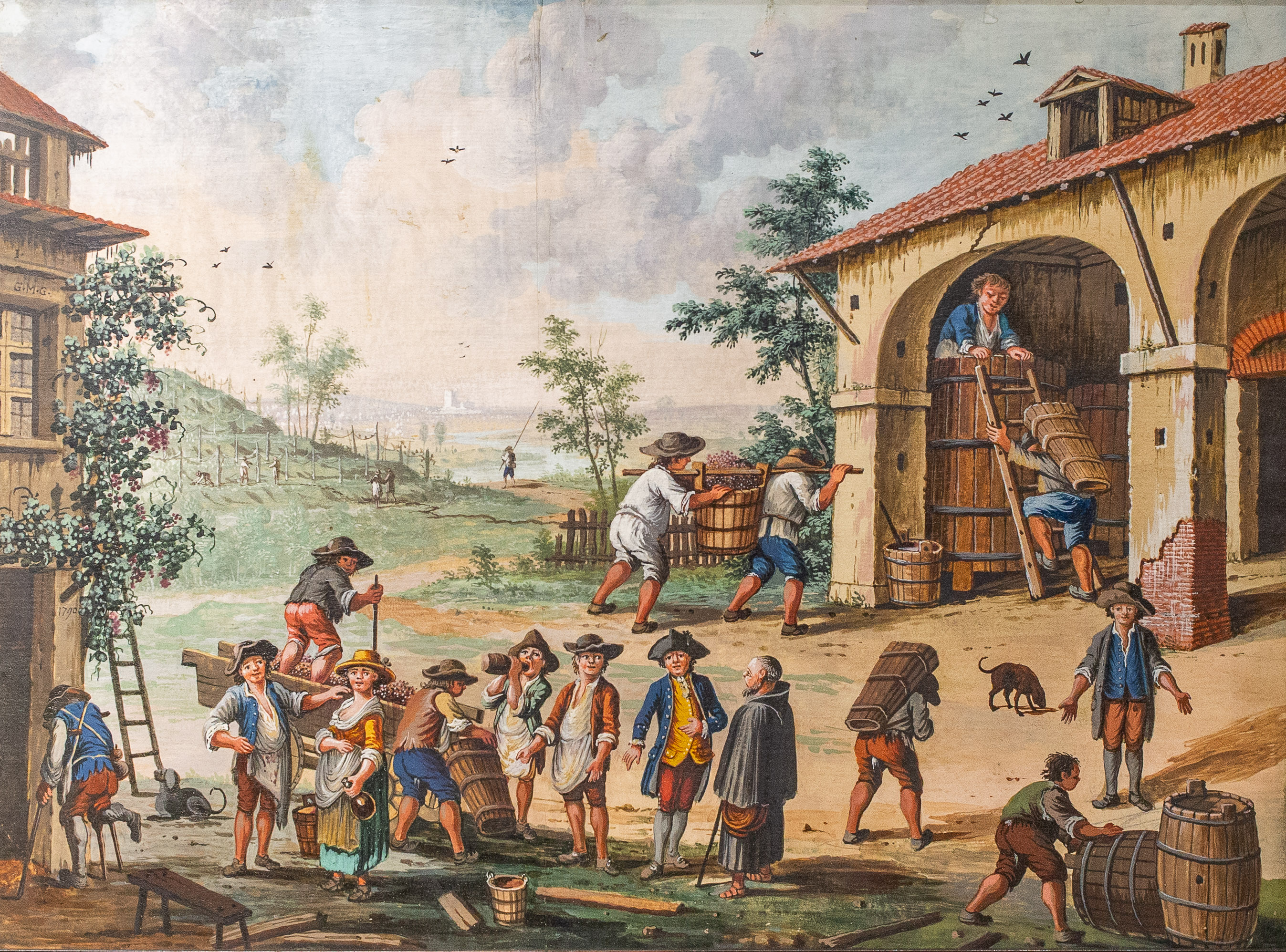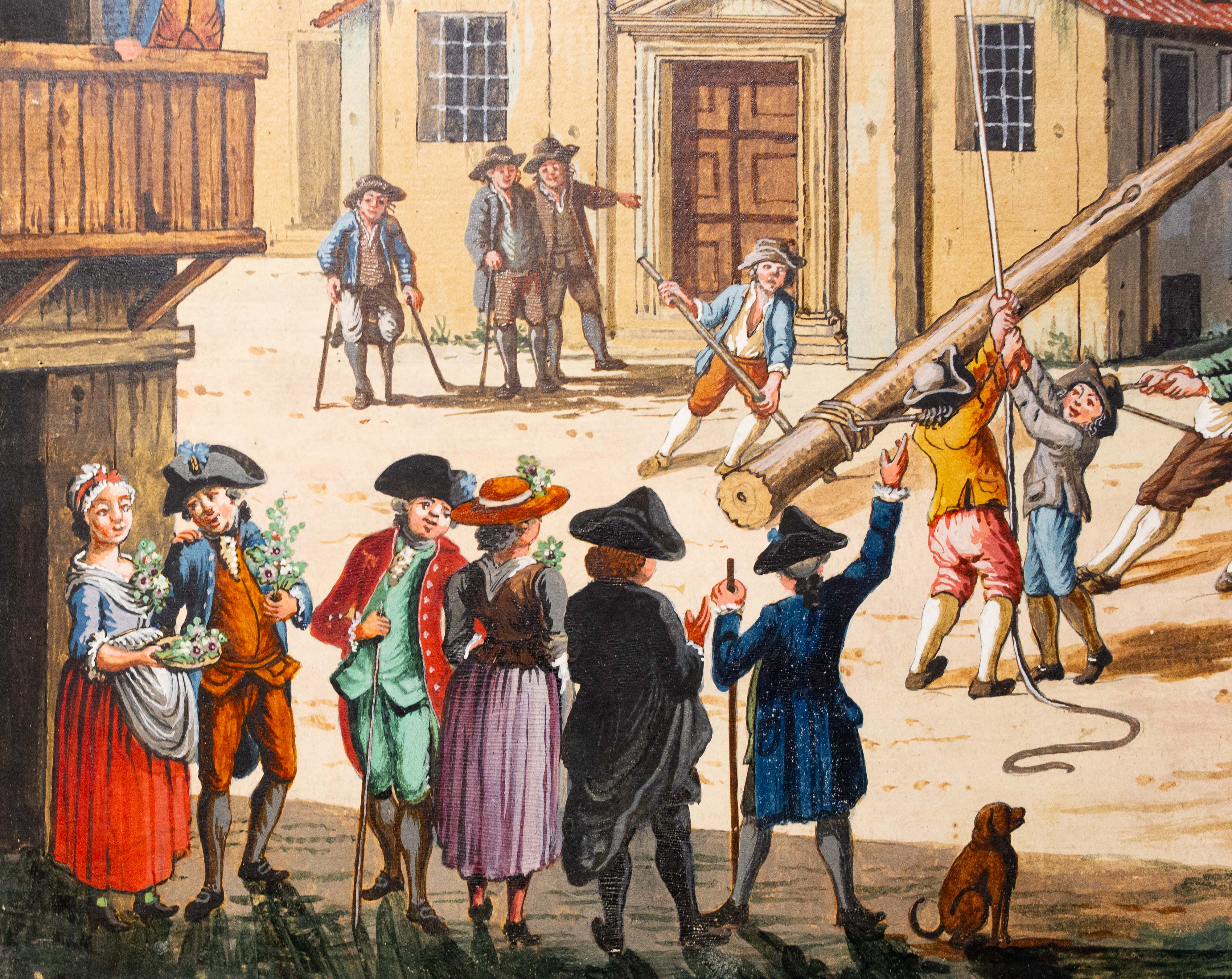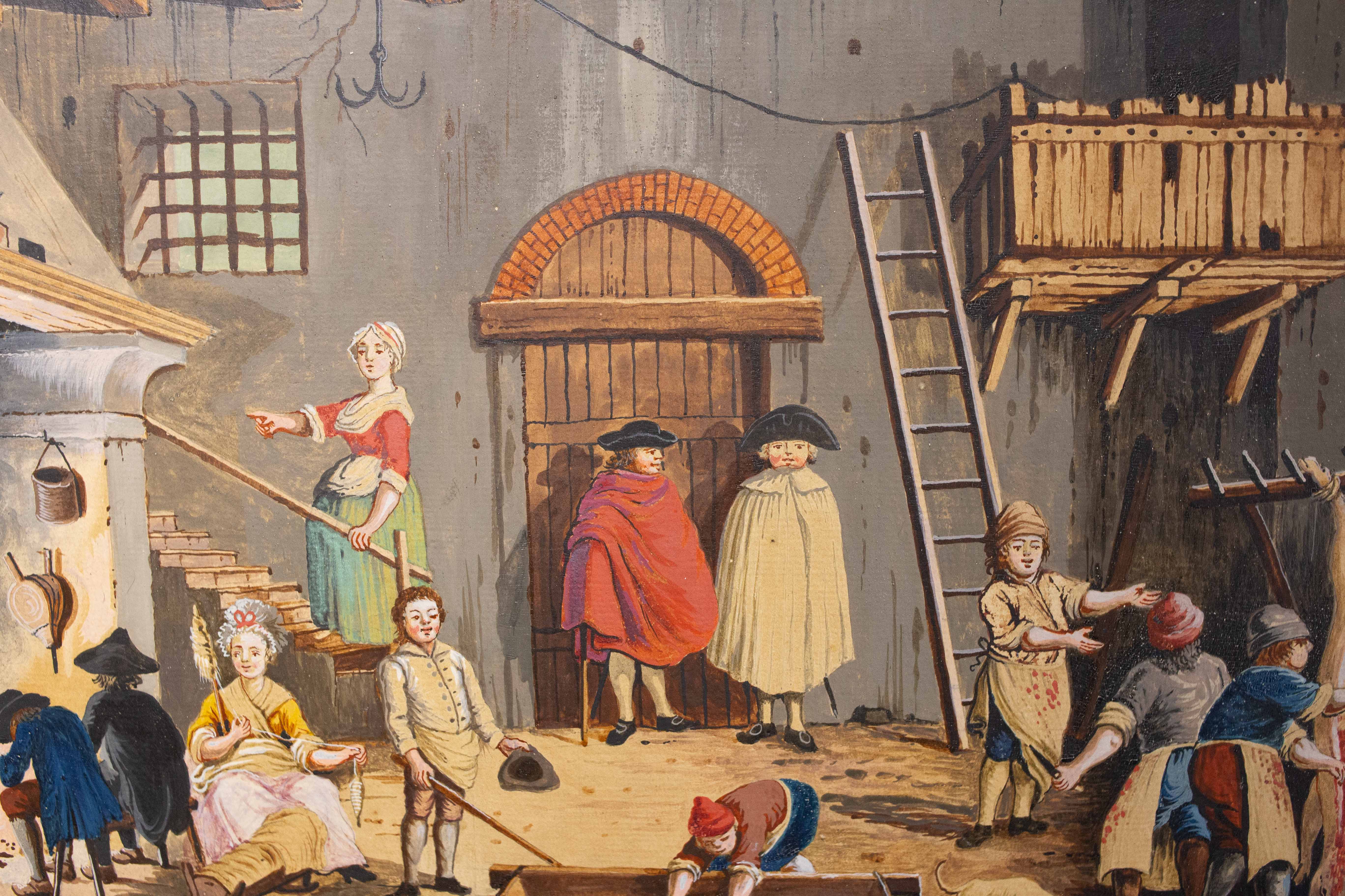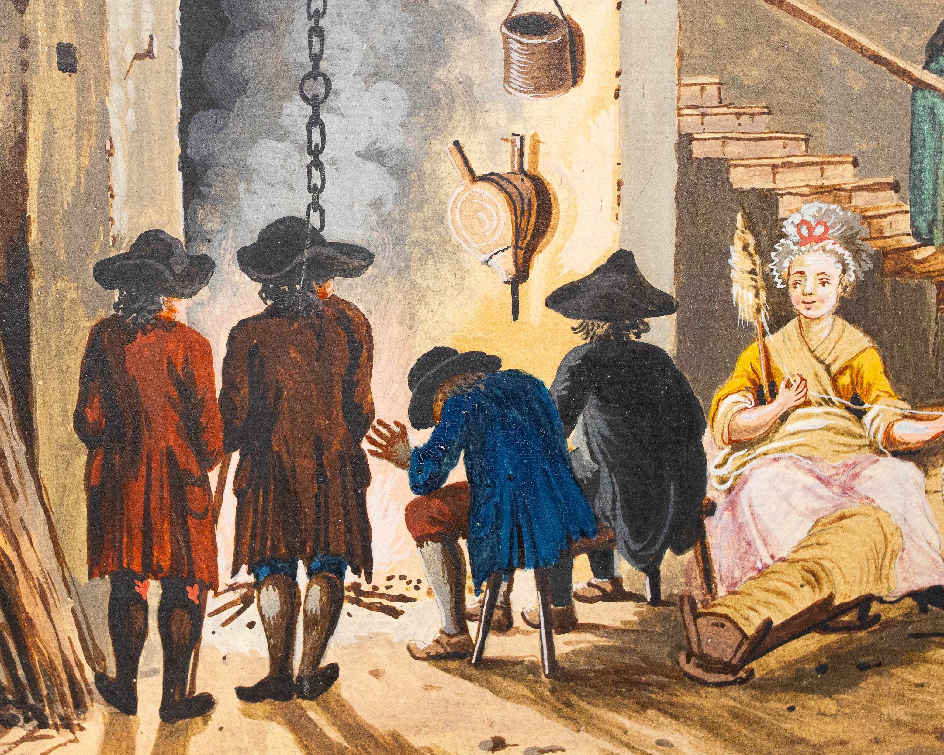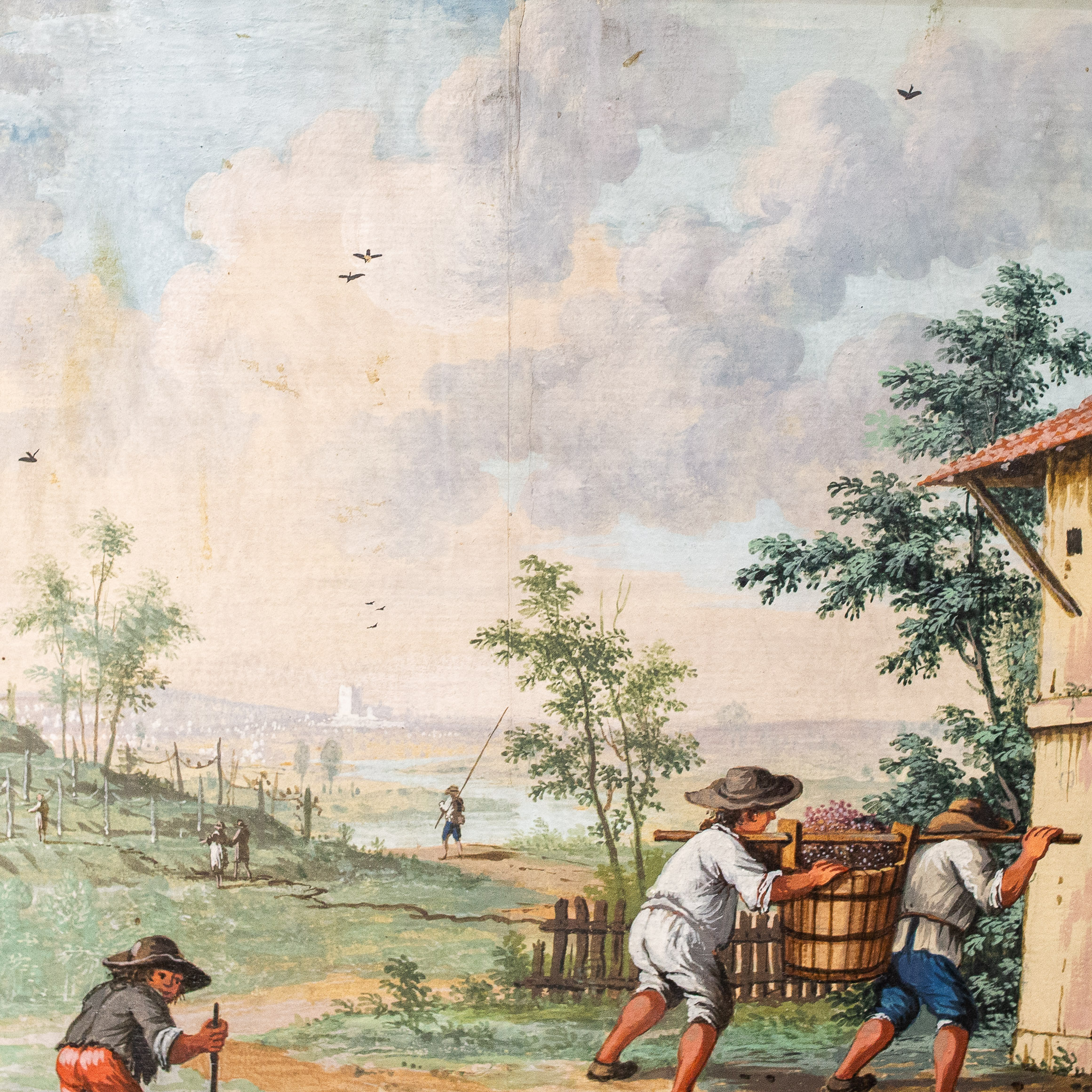 Le figure, caratterizzate da abbigliamenti tipici della fine del XVIII secolo, si muovono in spazi prospetticamente costruiti, con un’attenzione quasi documentaria alla vita contadina e alle architetture rurali.