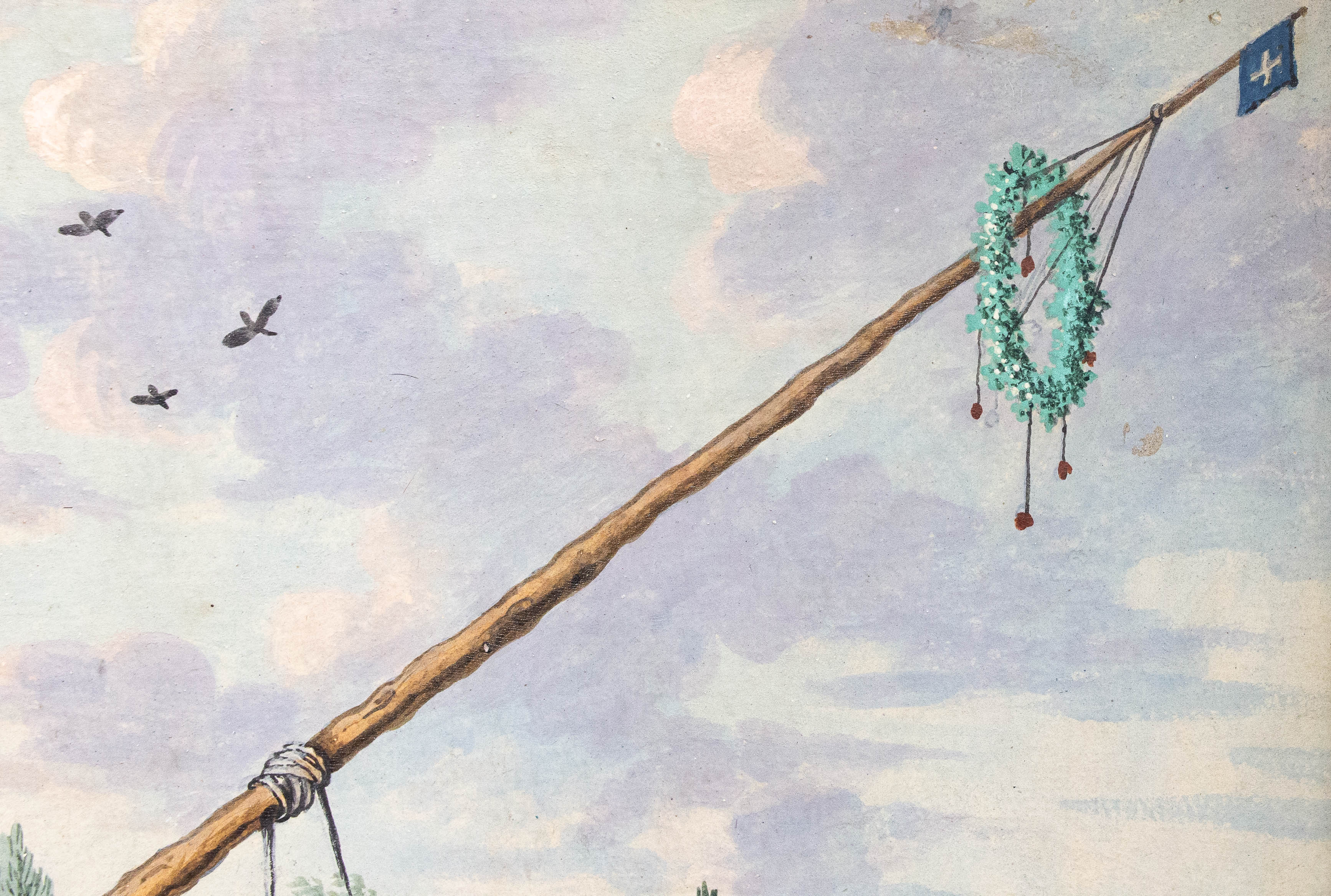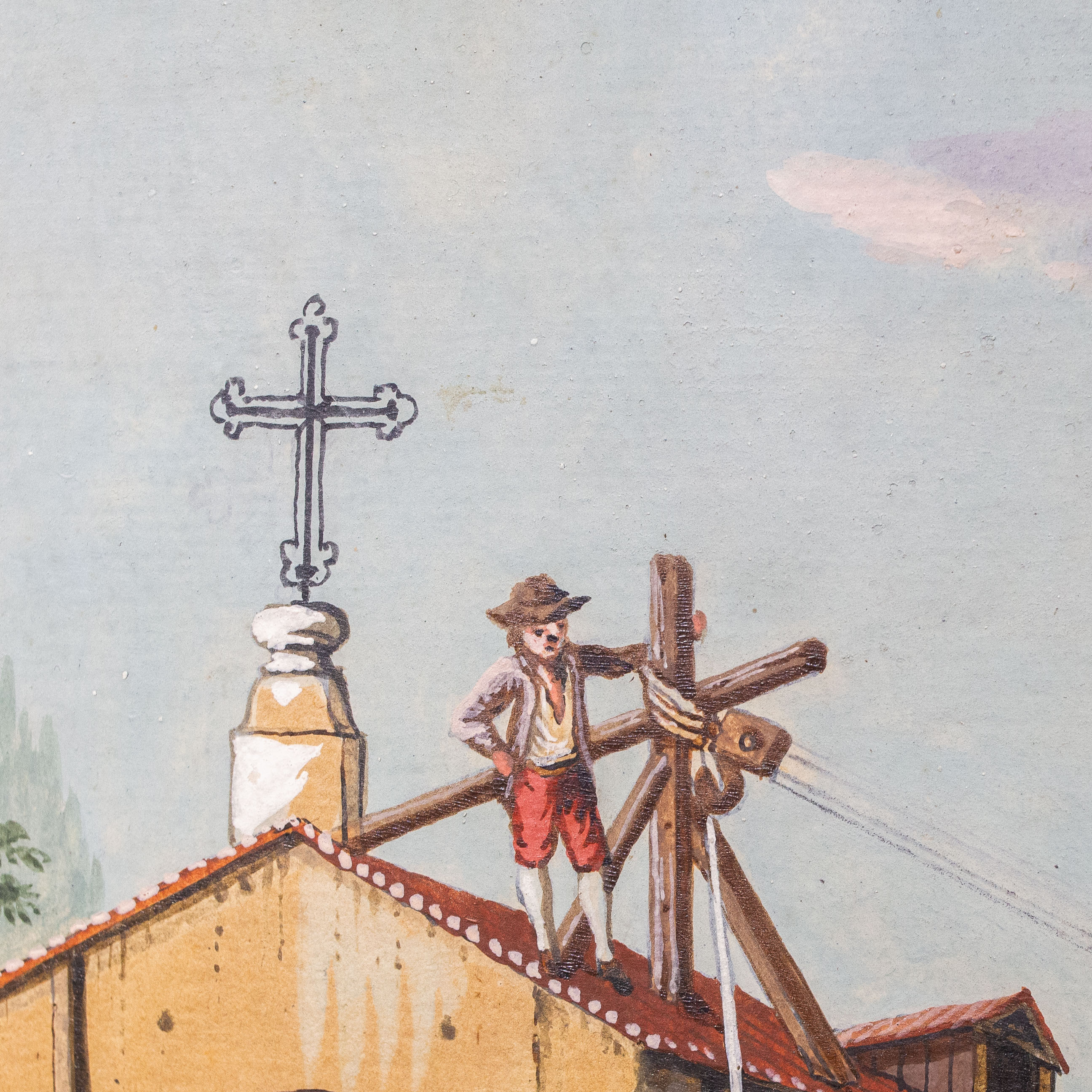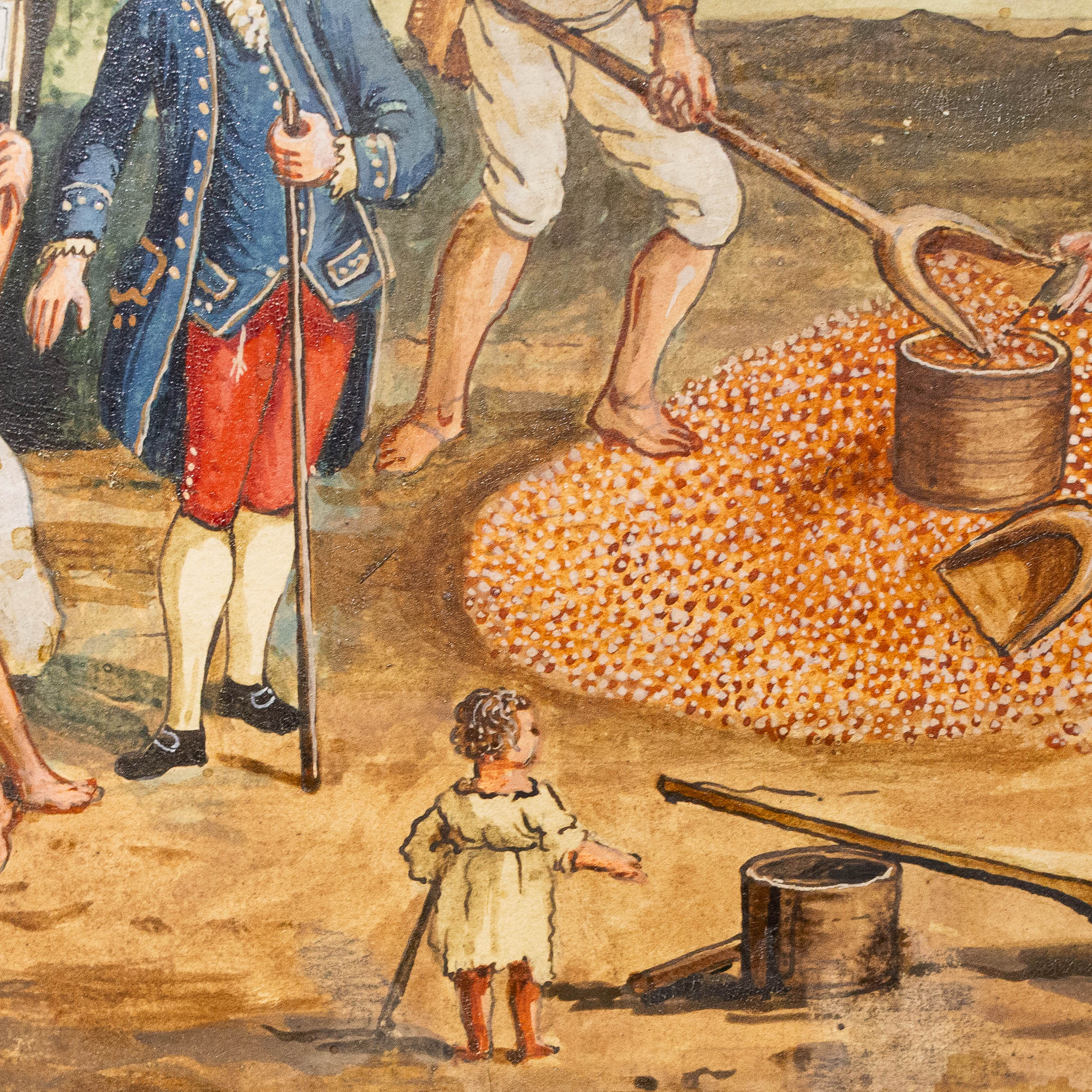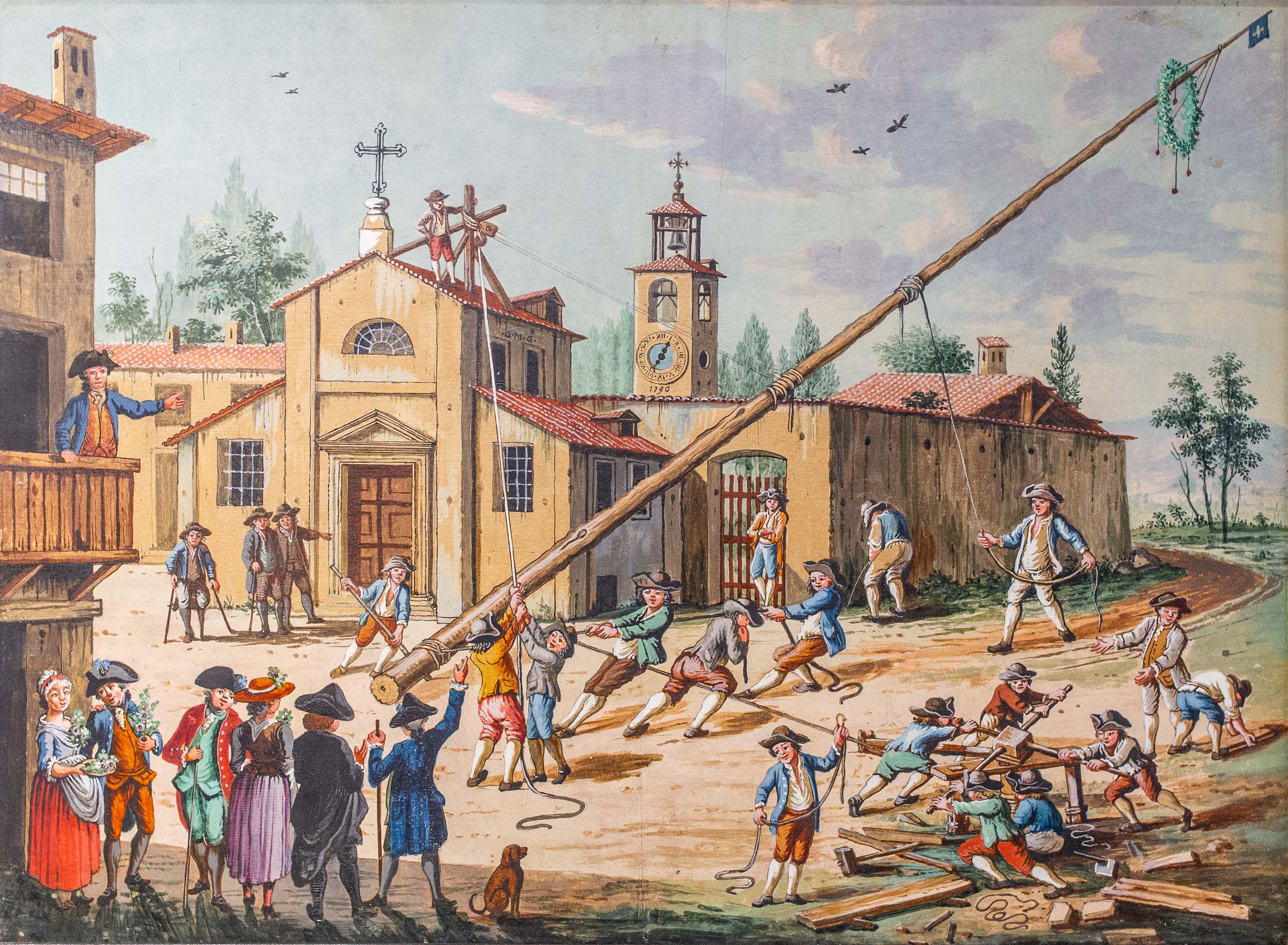 Le figure, caratterizzate da abbigliamenti tipici della fine del XVIII secolo, si muovono in spazi prospetticamente costruiti, con un’attenzione quasi documentaria alla vita contadina e alle architetture rurali.