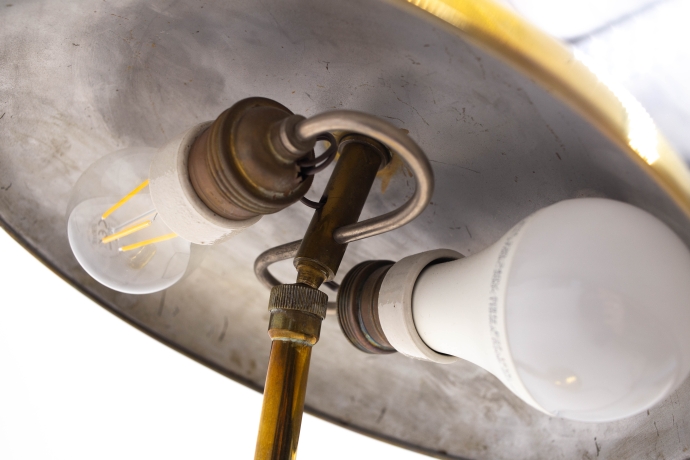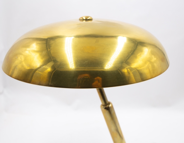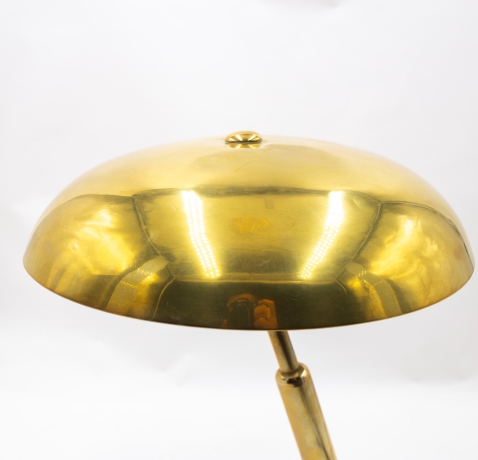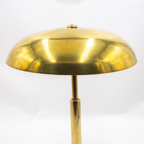Questa magnifica lampada da scrivania è un progetto dell'architetto italiano Giovanni Michelucci. E' stato realizzato negli anni '40 dalla Lariolux. Ha una base rotonda e appesantita e due giunti sferici che consentono di regolare la lampada in due punti: vicino alla base e in alto, appena sotto il paralume.