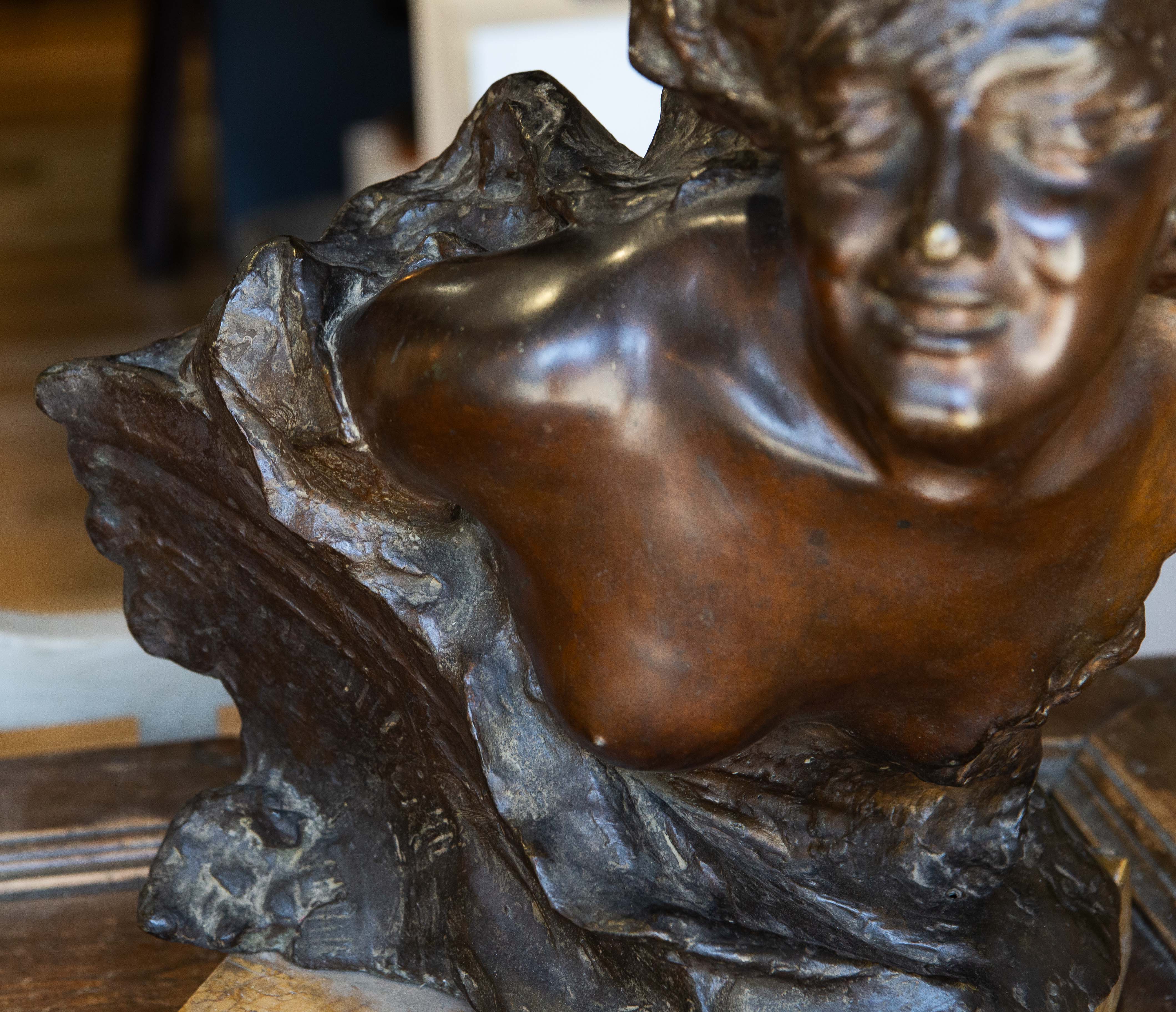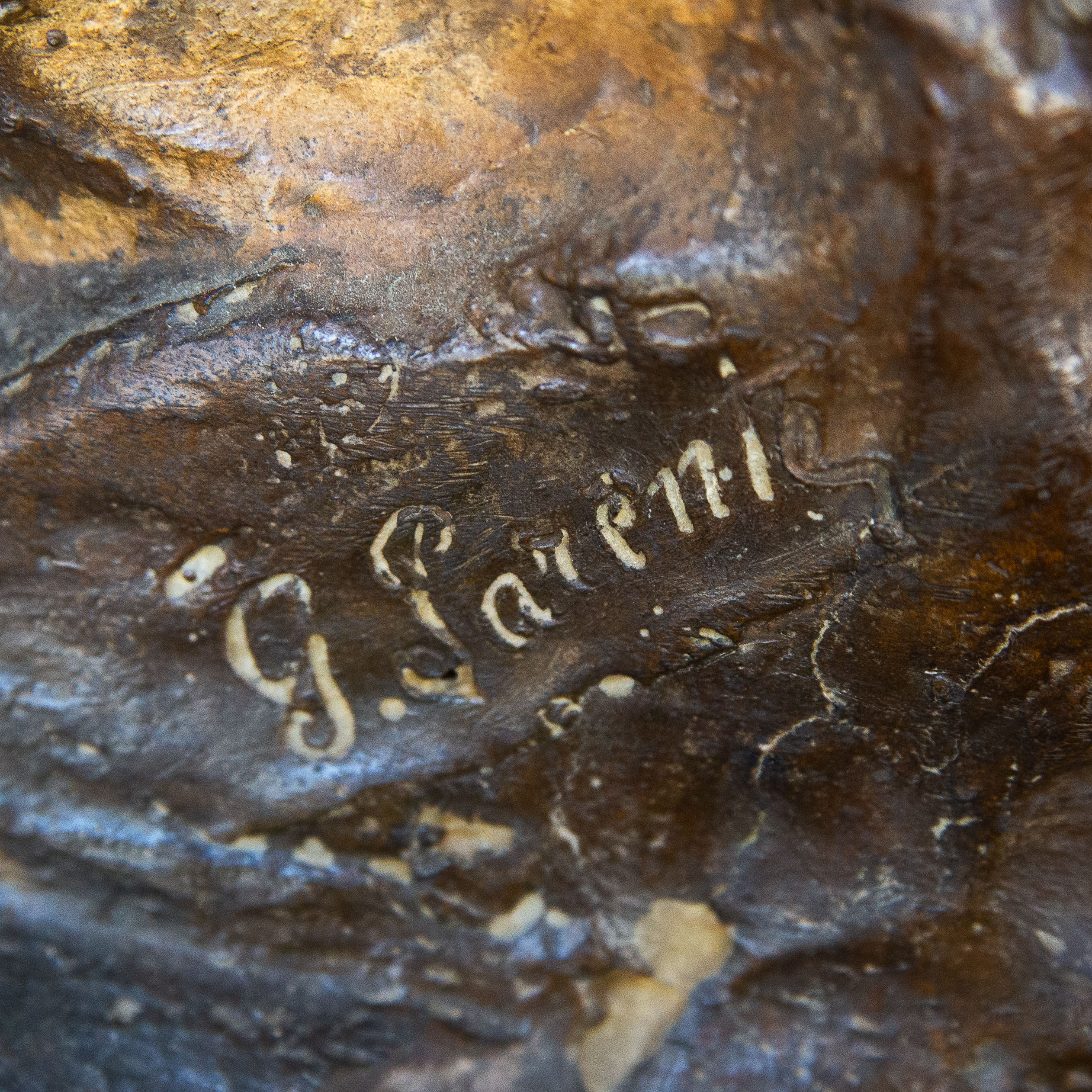Questa raffinata scultura in bronzo, firmata da Gabriele Parente, si impone per la sua intensa carica espressiva e per la straordinaria qualità plastica.