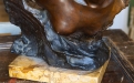 La patina brunita, profonda e calda, esalta i volumi e sottolinea la maestria dell’artista nella resa anatomica e nella modulazione della luce. La base in marmo, elegante e sobria, completa l’opera conferendole equilibrio e presenza scenica.