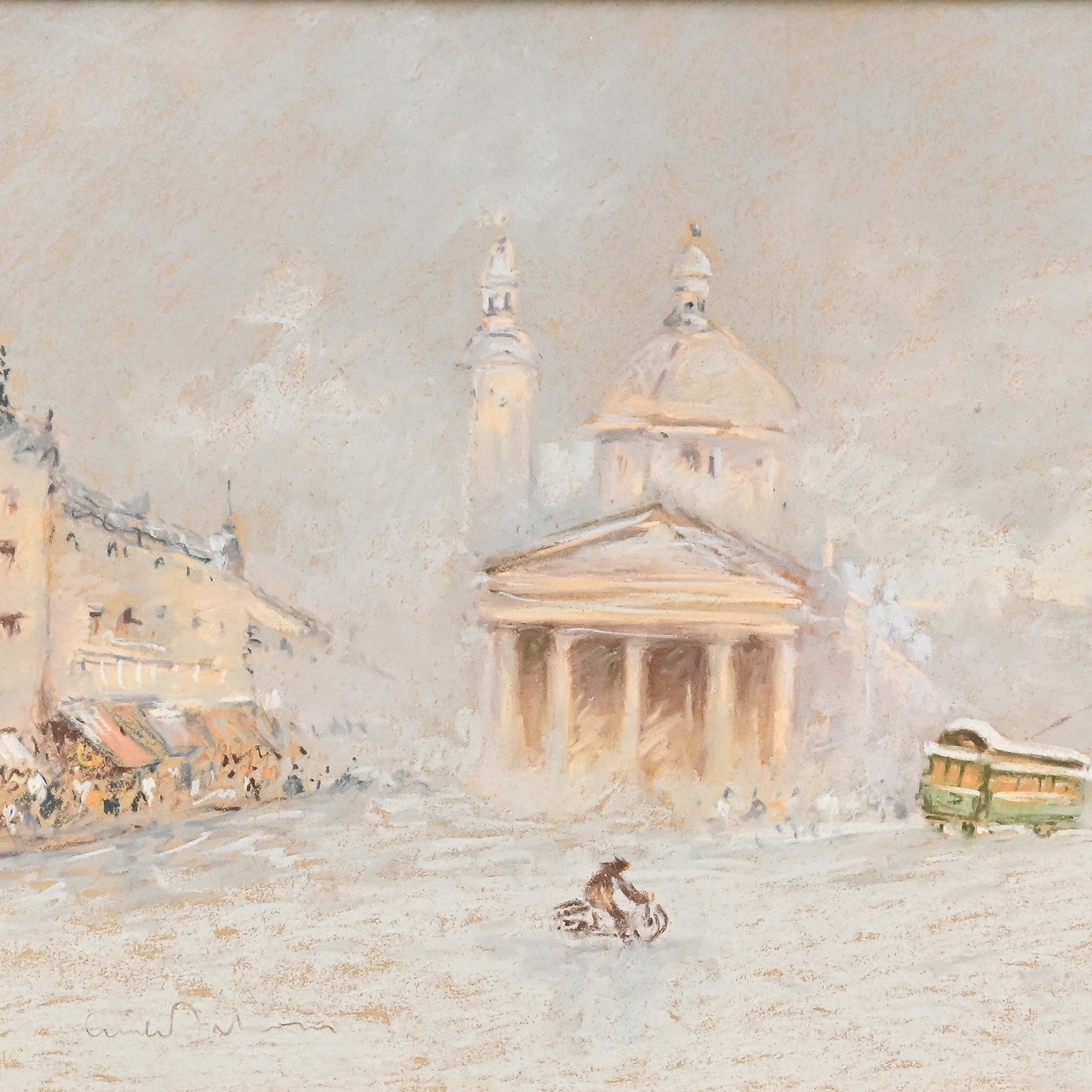"Vecchia Milano" pastello su carta di Giulio Falzoni degli anni '50/'60. Il dipinto presenta autentica al retro.