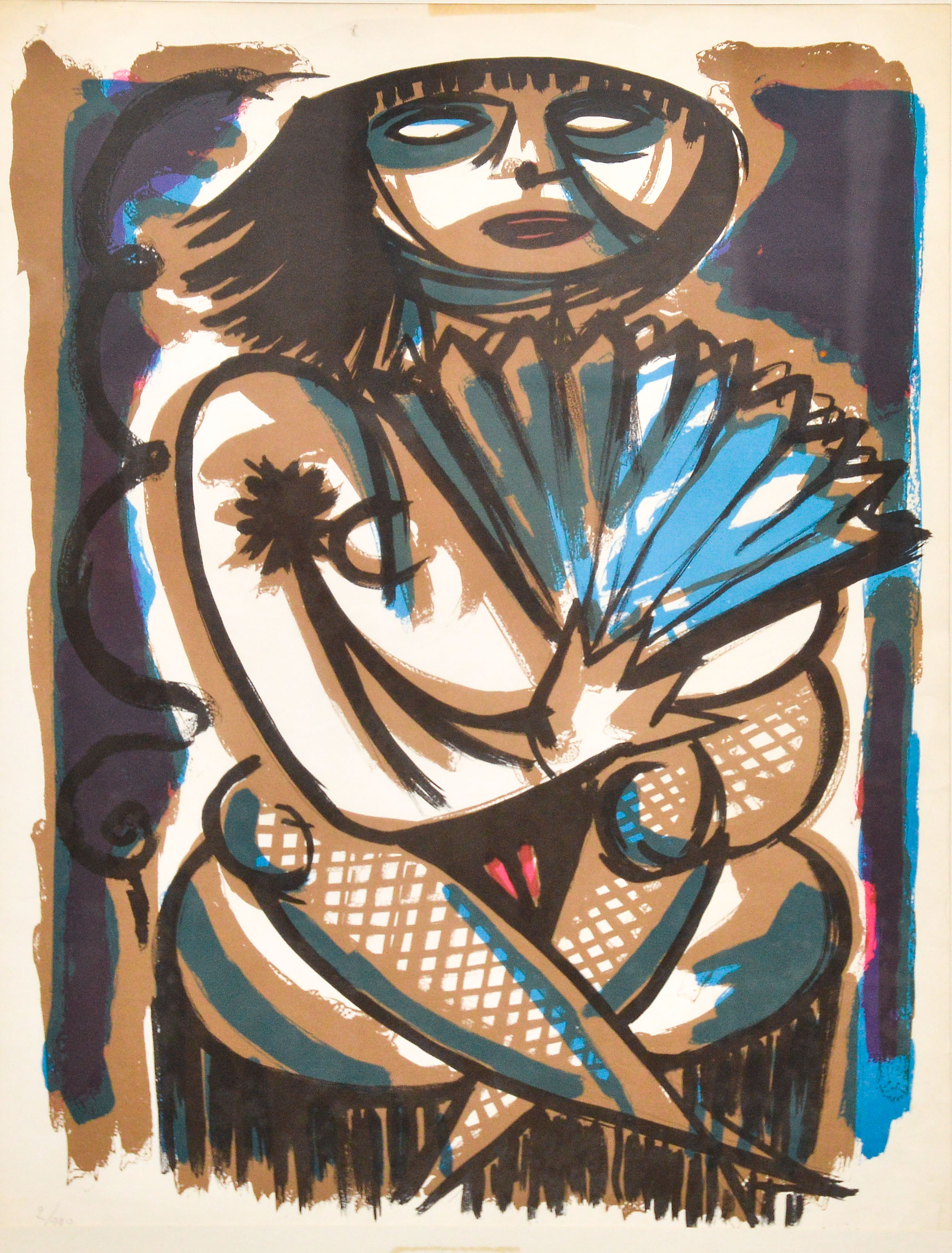 "Figura femminile", serigrafia di Giuseppe Migneco (1908-1997), numerata in basso a sinistra 2/200.