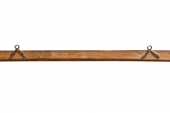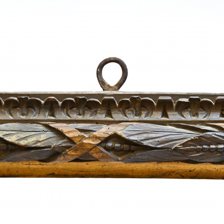 Grande Cornice in stile settecentesco in legno intagliato a mano, finitura color legno con dorature. Epoca fine '800.