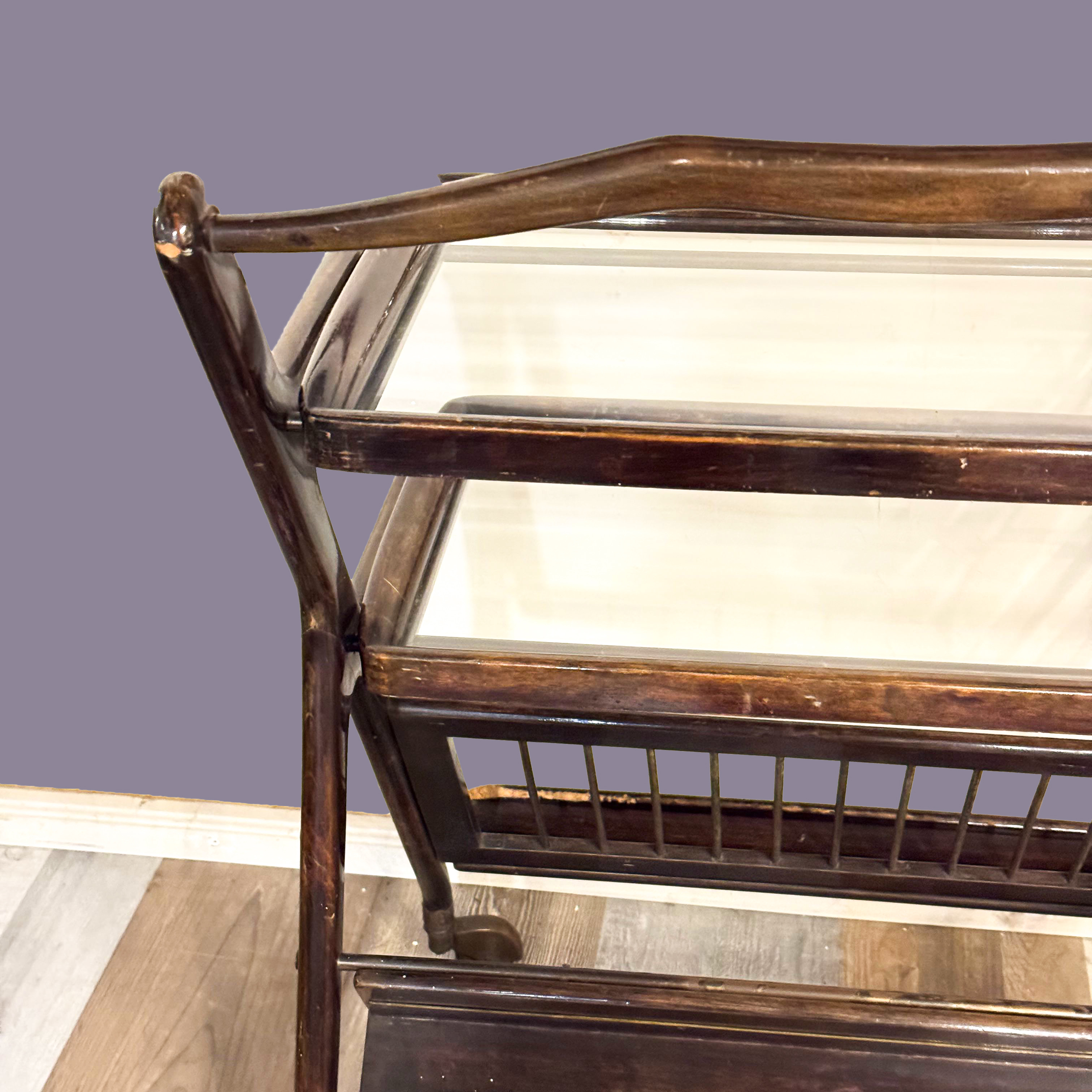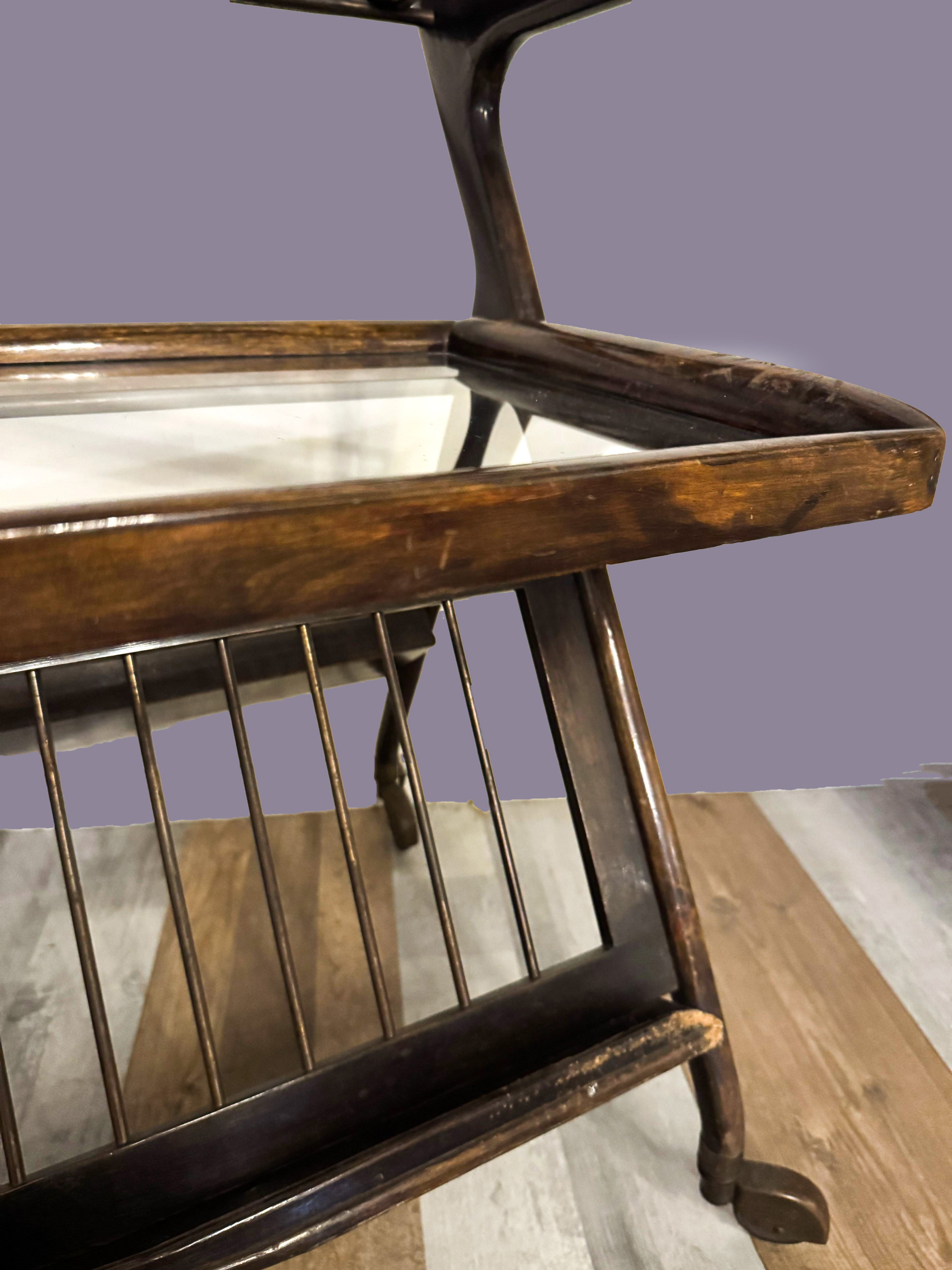 Ico Parisi, carrello in legno ottone e vetro, Anni '50
