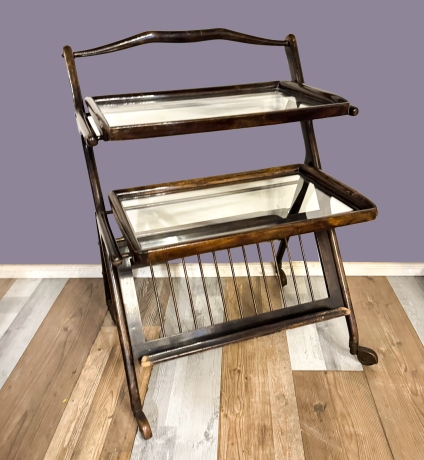 Carrello portavivande design italiano Ico PARISI, con due vassoi estraibili, porta riviste e bottiglie alla base. Il carrello è in condizioni buone, come è possibile constatare dalle foto.