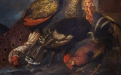 Importante e scenografica composizione di natura morta animata, attribuita a Giovanni Crivelli, tra i maggiori interpreti della pittura animalista lombarda del XVIII secolo. L’opera si inserisce pienamente nella tradizione decorativa barocca e tardo-barocca, destinata a ornare ambienti nobiliari con soggetti di grande impatto visivo e simbolico.