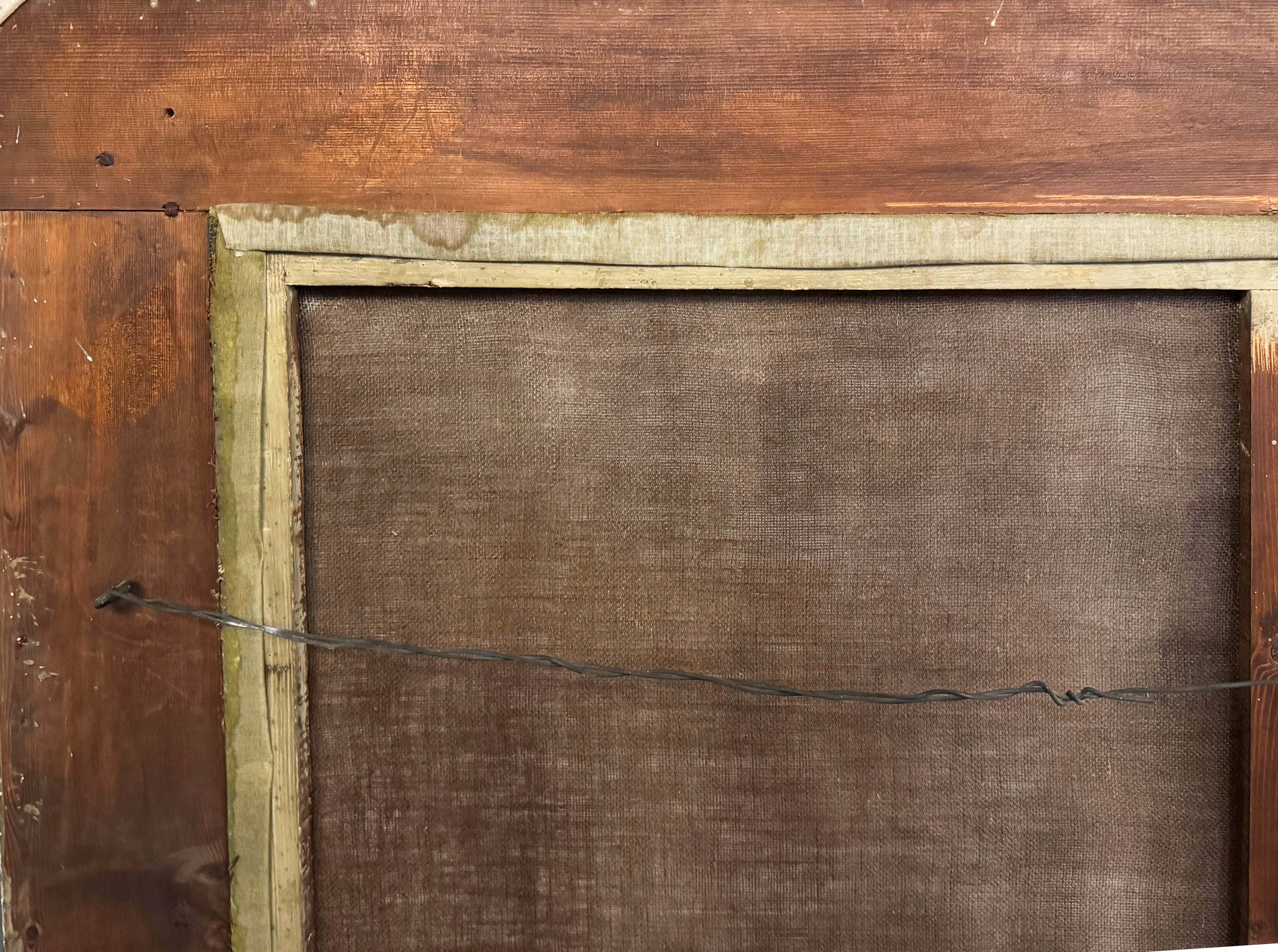 L’opera è inserita in una cornice lignea di gusto sobrio, che valorizza la superficie pittorica senza sovrastarla.