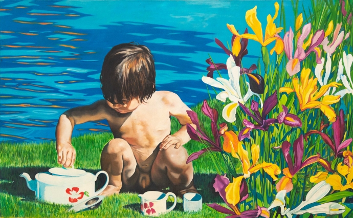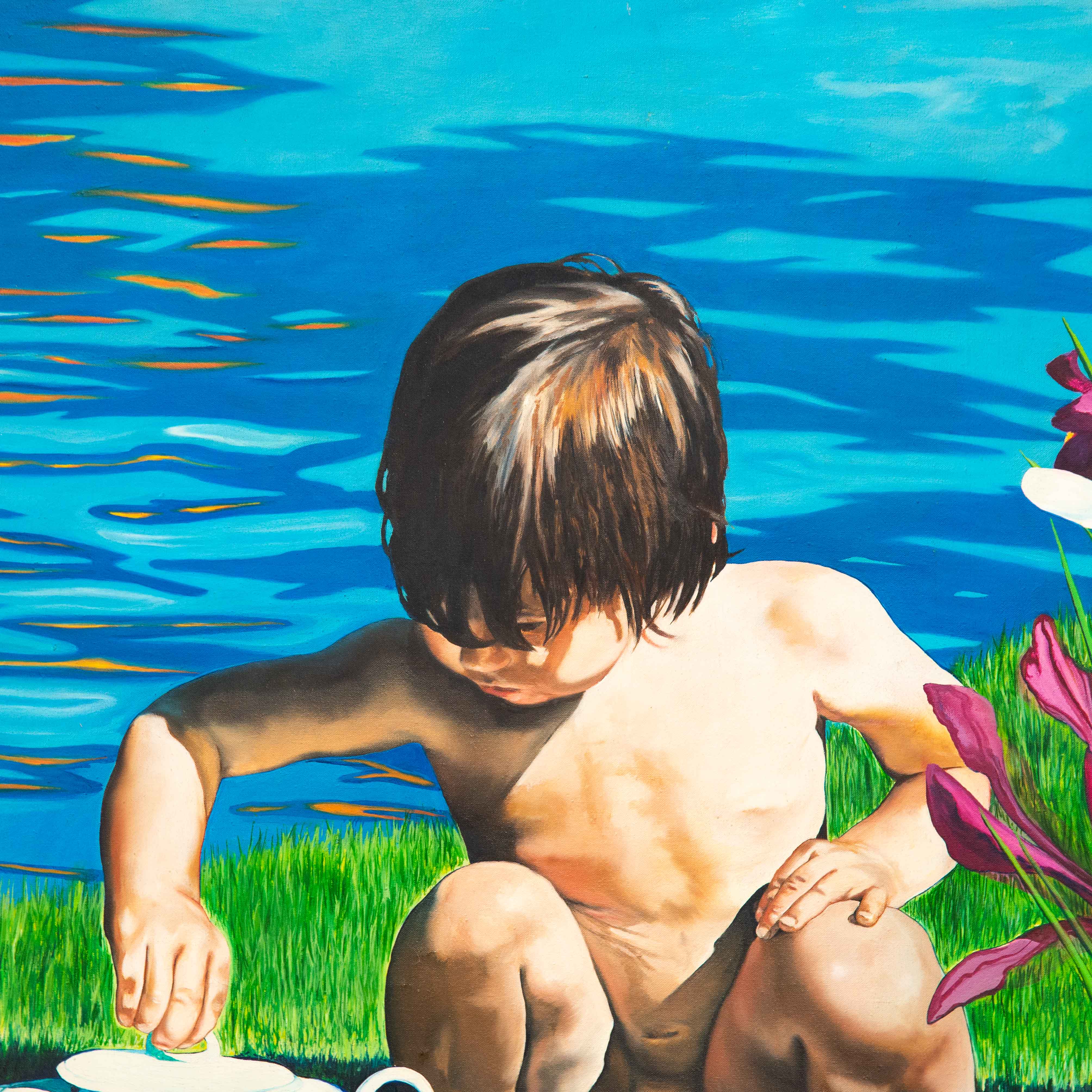 "Child" - Olio su tela di Kevin Whitney, firmato e datato 1971 in basso a destra.