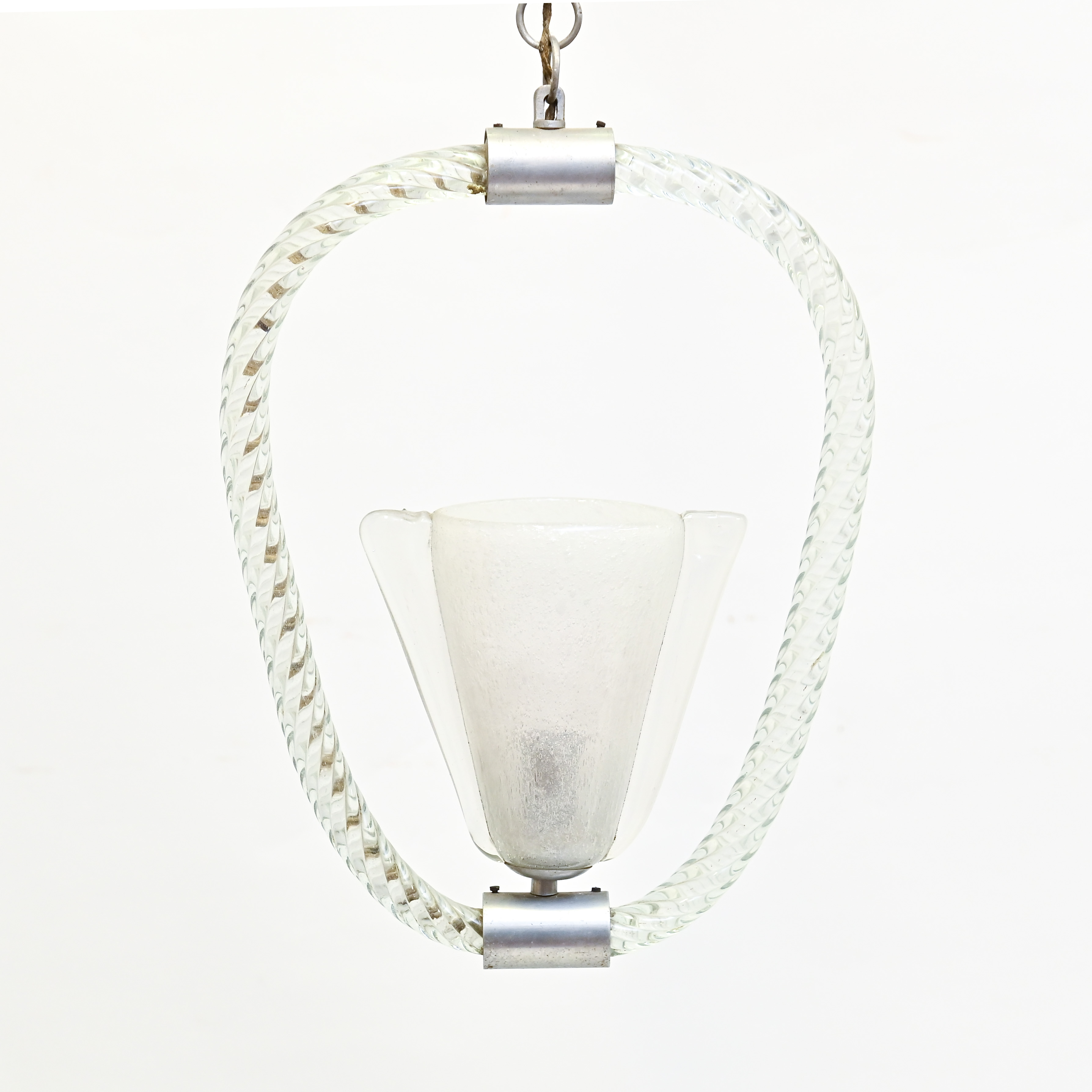 Lampadario degli anni '50, stile Venini, in vetro di Murano, con un solo punto luce. In ottime condizioni.