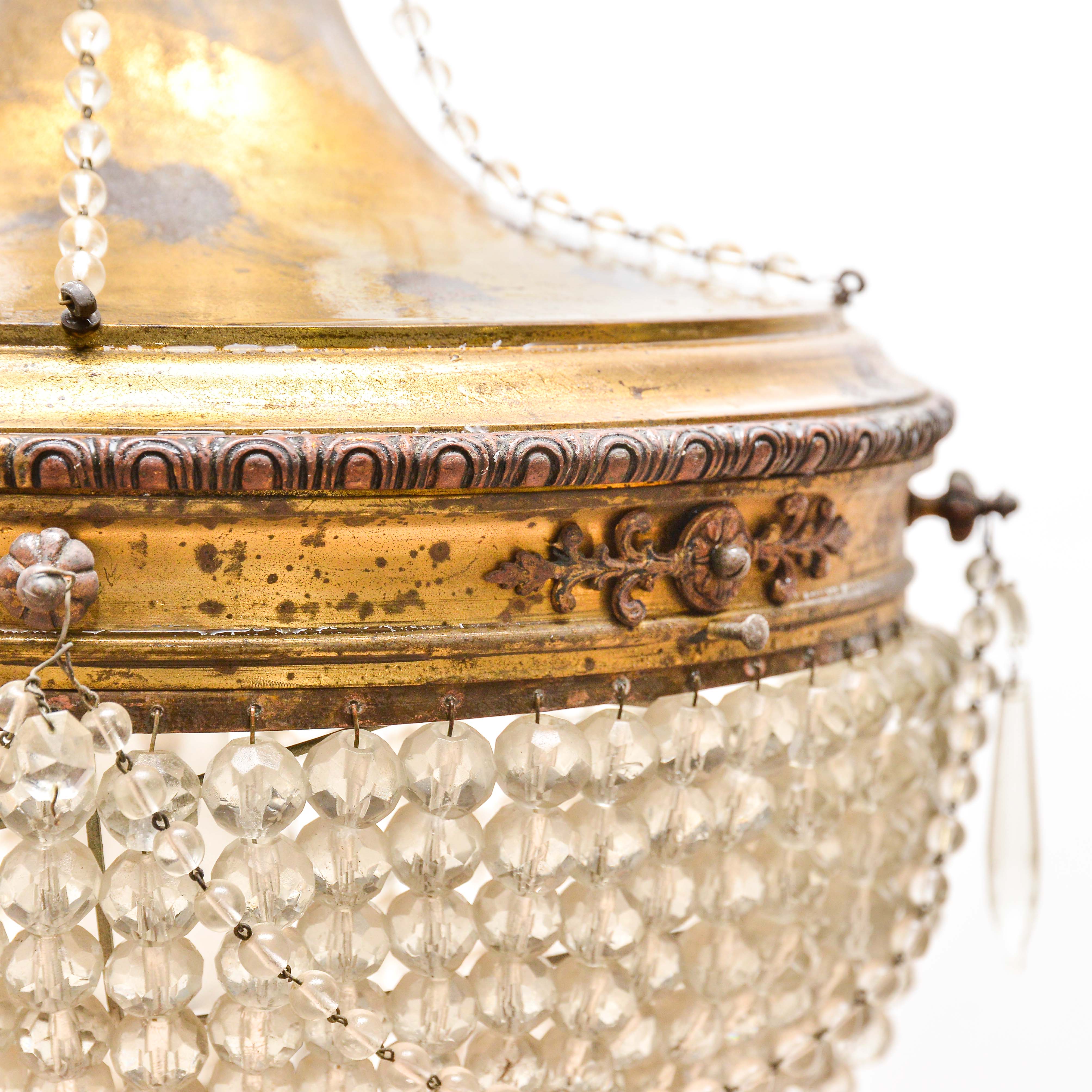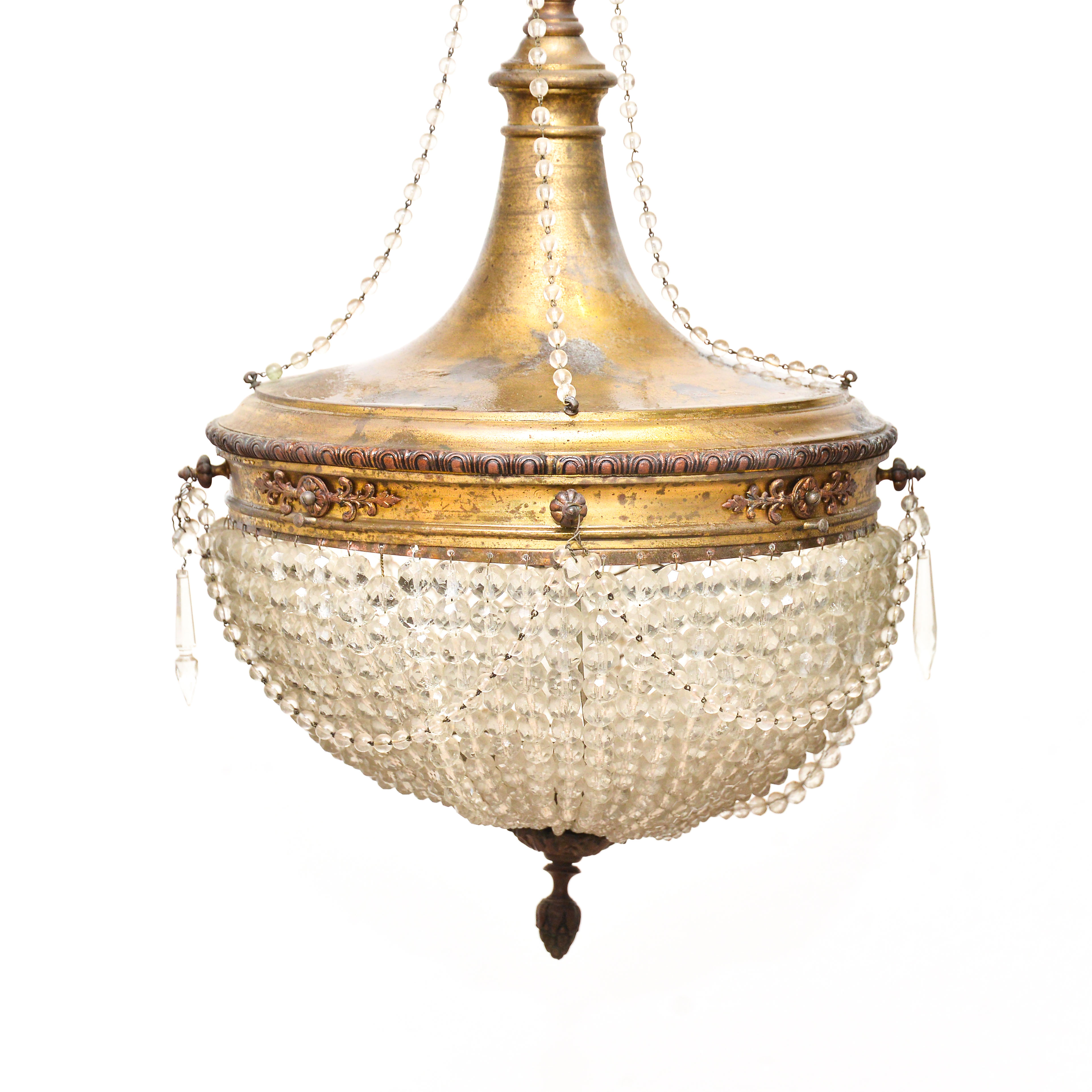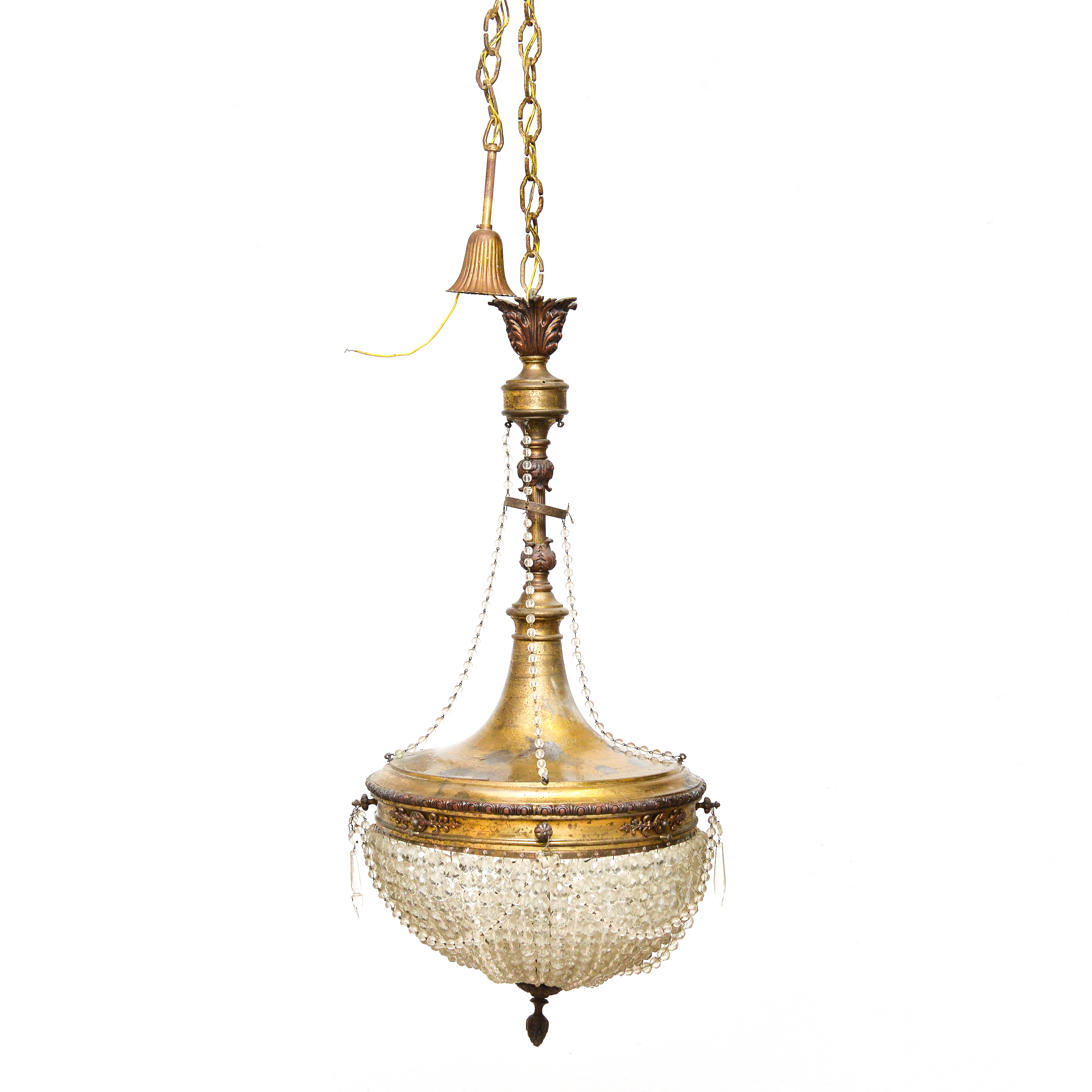 Lampadario a mongolfiera, con un punto luce, risalente ai primi del '900, da restaurare.