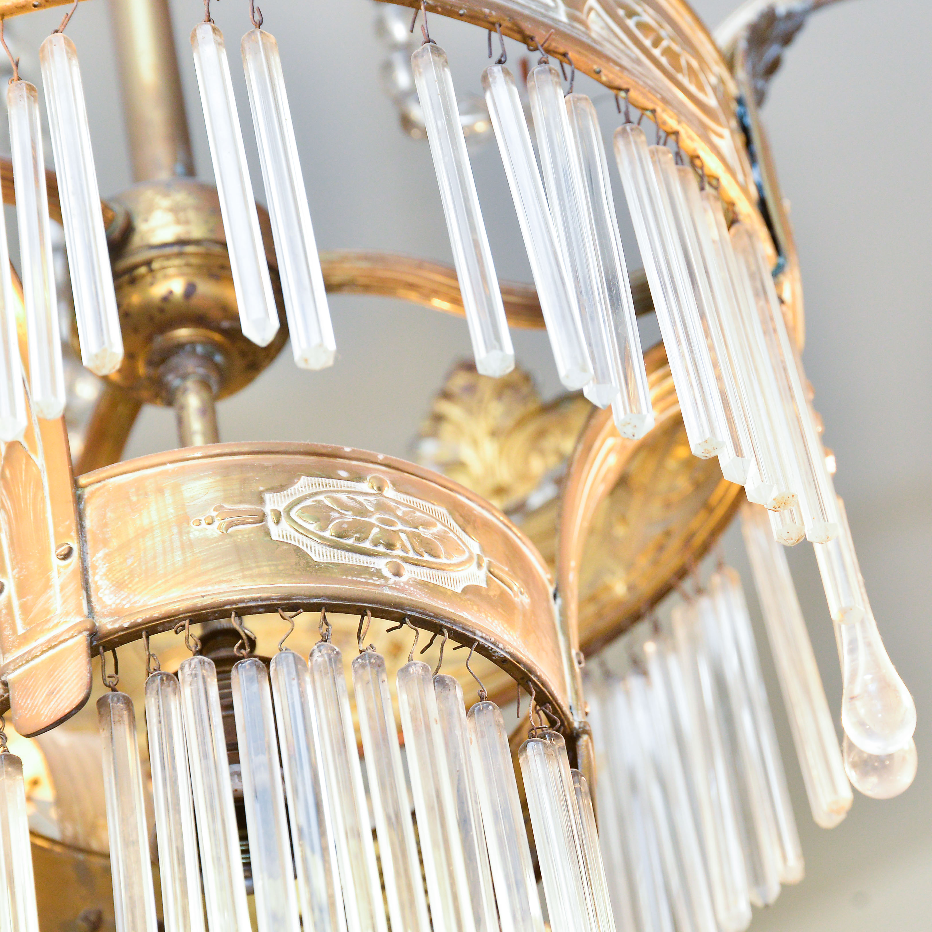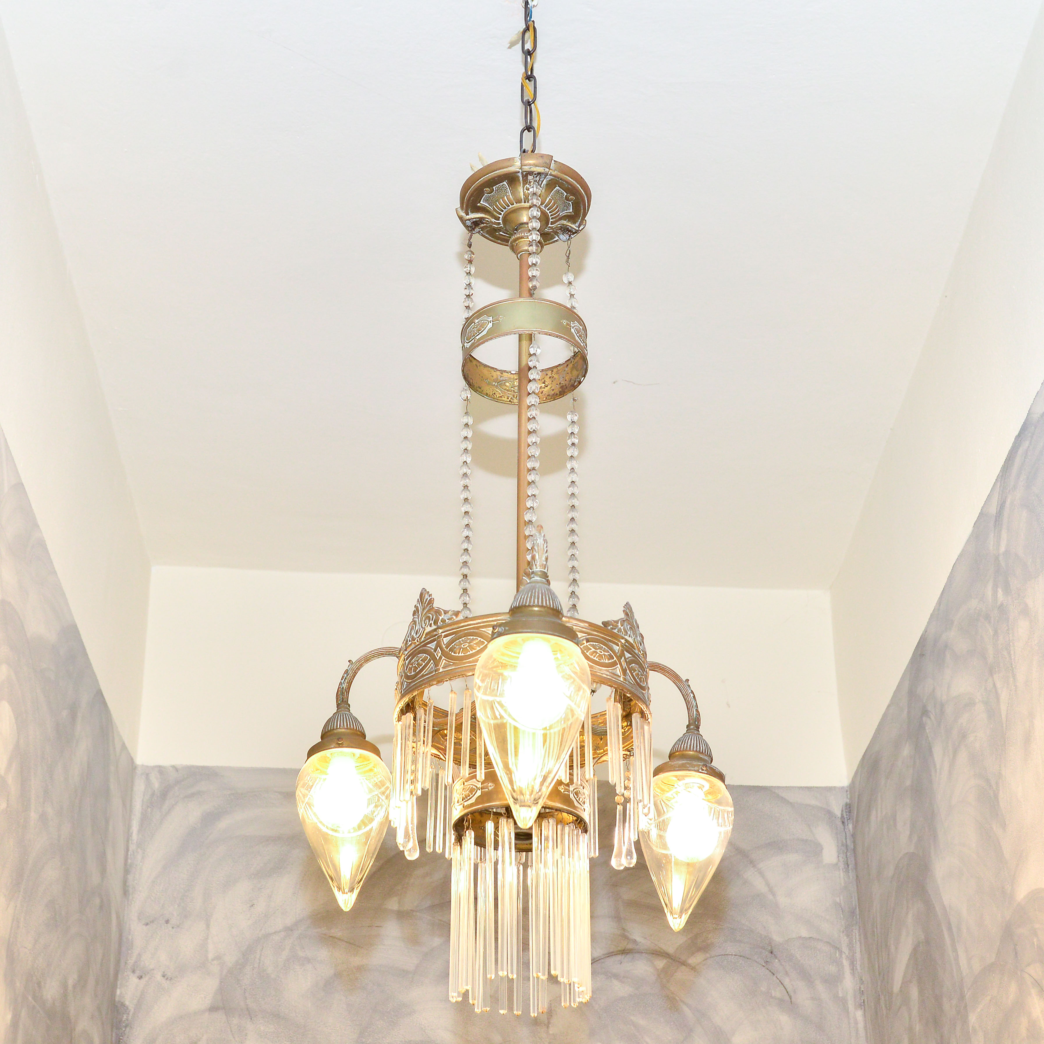 Lampadario liberty, a tre luci, con vetri molati e pendenti, risalente ai primi del '900.
