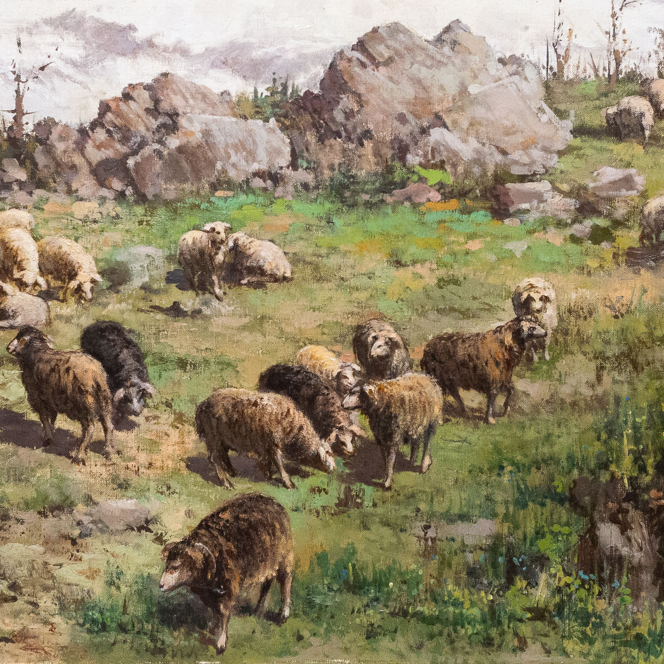 Lodovico Raymond, olio su tela di grande dimensione, "Al Pascolo", fimato, 1890