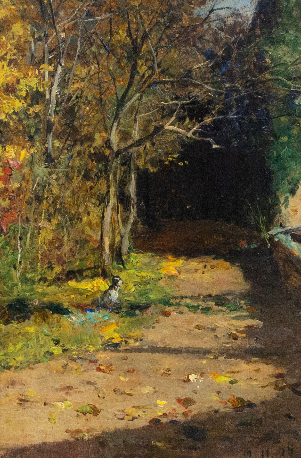 Olio su tavoletta, di Lorenzo Delleani, "Stradina Ombrosa", 12.11.87