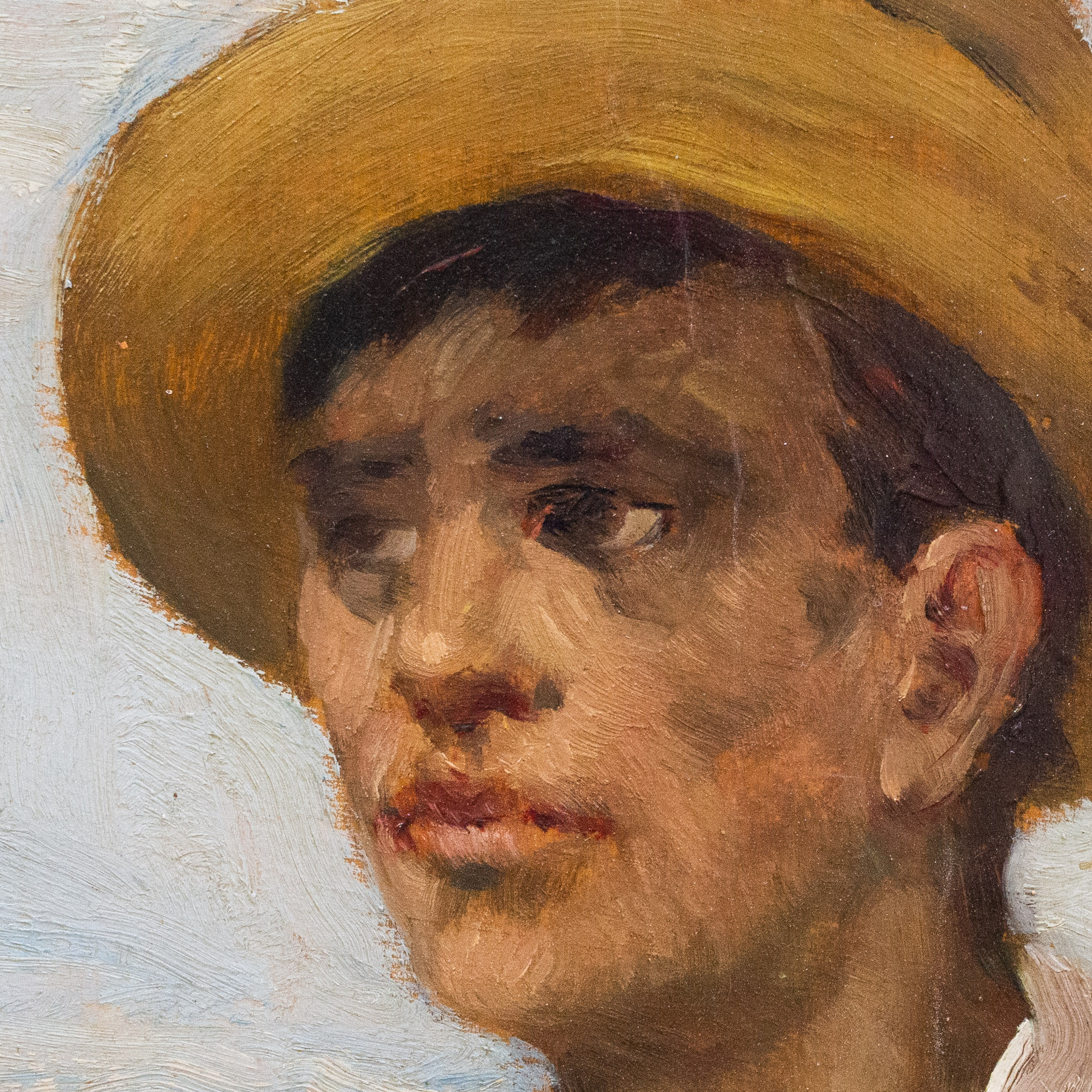 Bel dipinto raffigurante ragazzo con cappello alla bretone