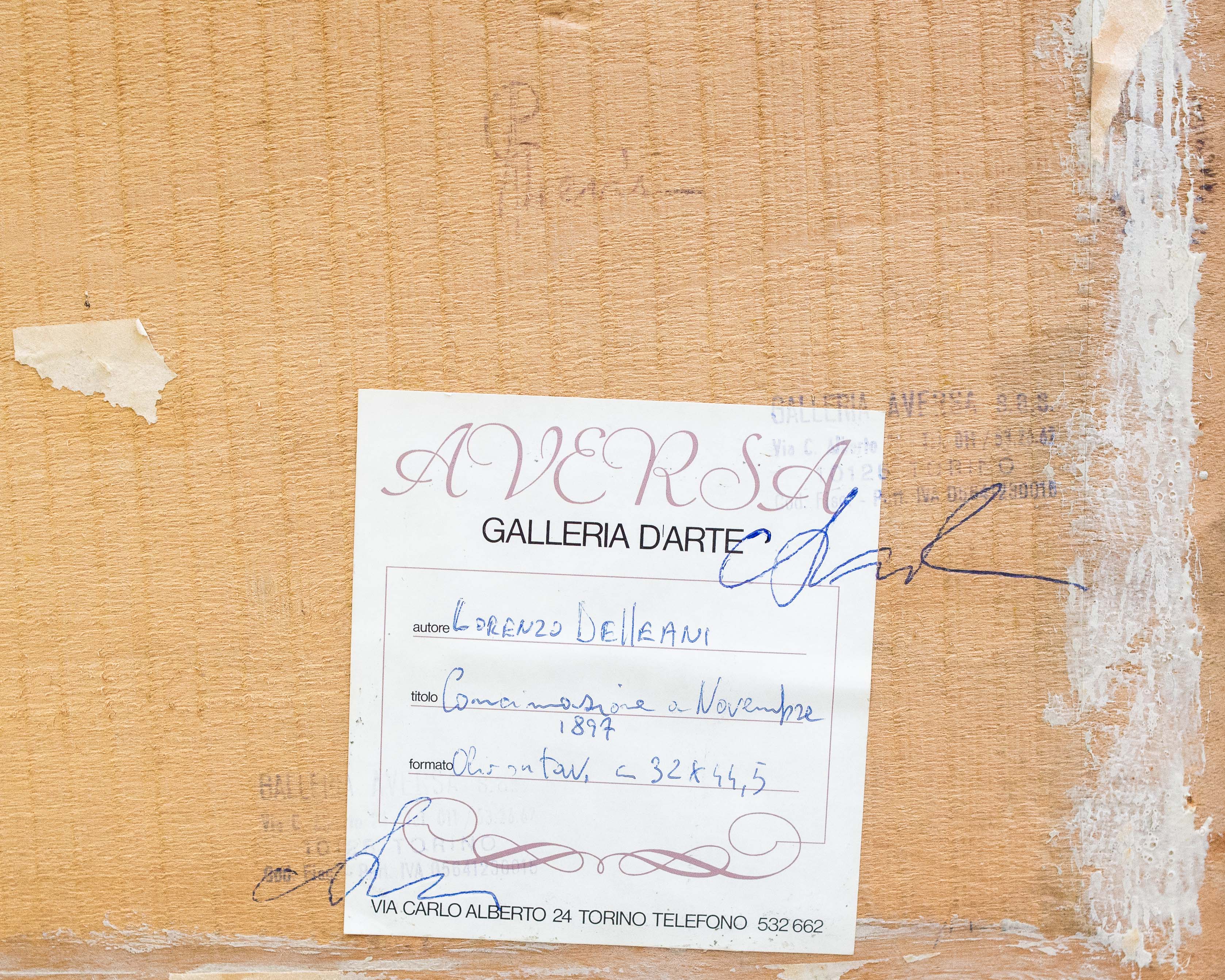 L'opera, certificata dal timbro Lorenzo Delleani sul retro e accompagnata da etichette della Galleria Fogliato e della Galleria Aversa, è anche documentata al n. 1320 con foto nel libro di Angelo Dragone "La vita, l'opera e il suo tempo".