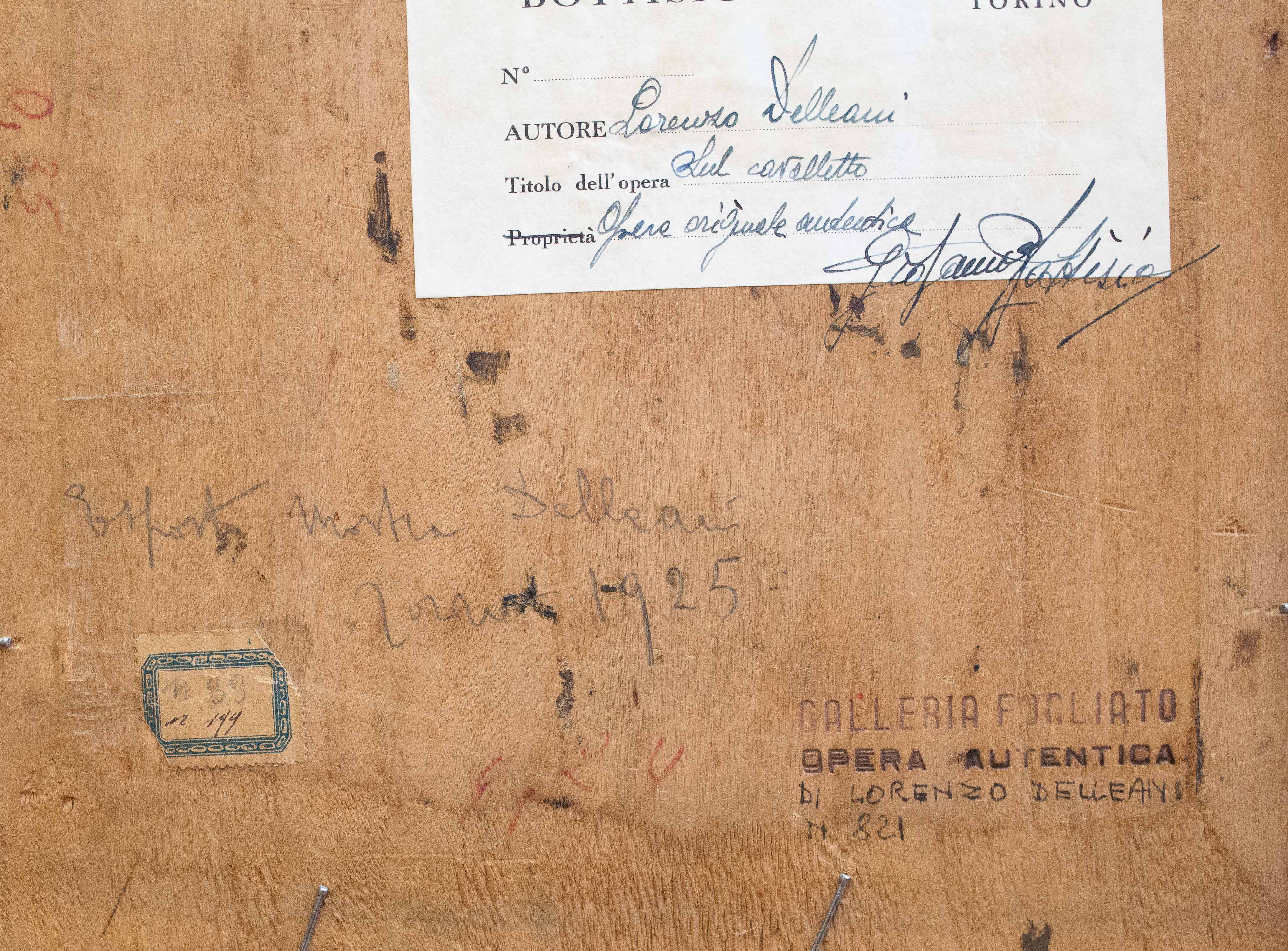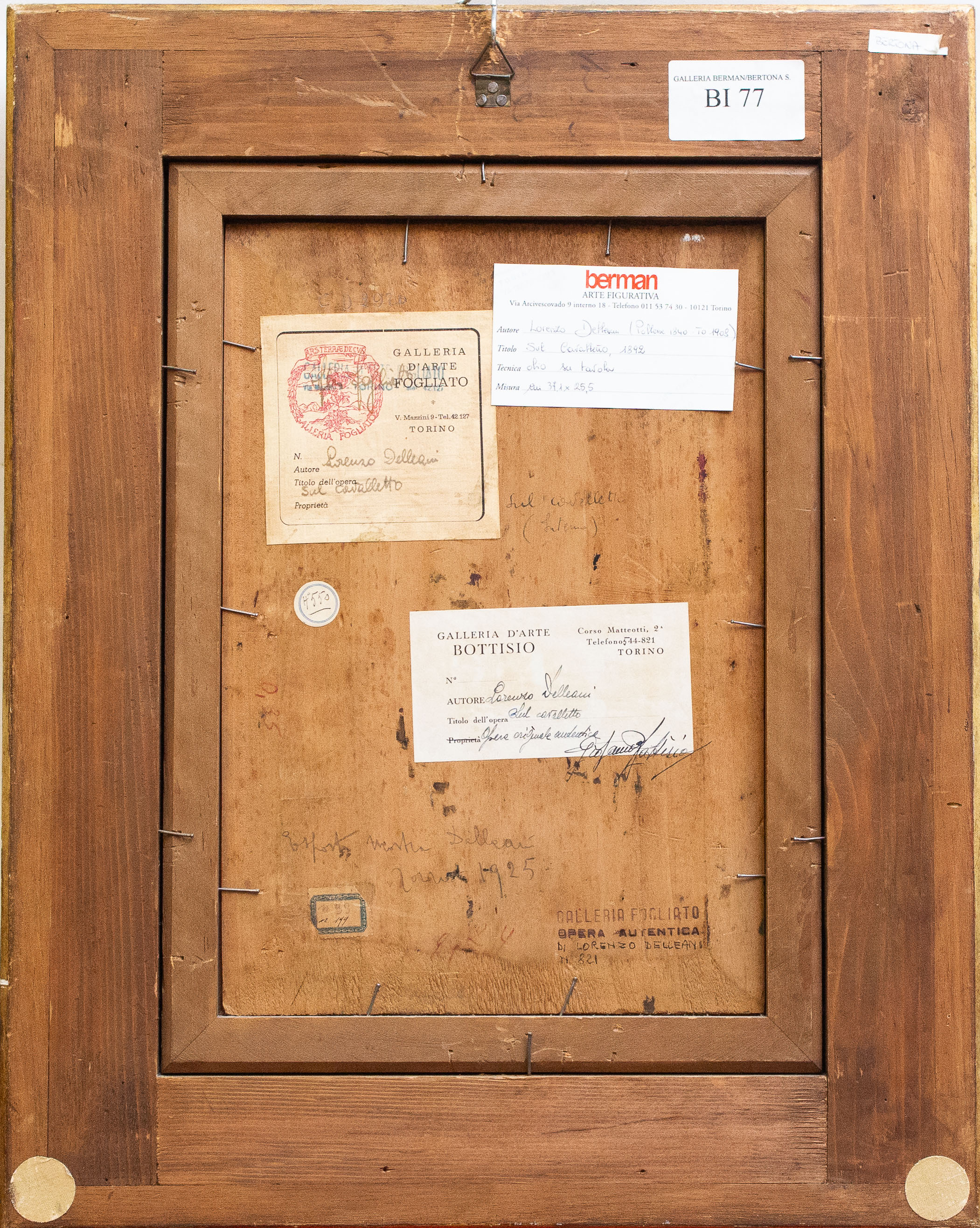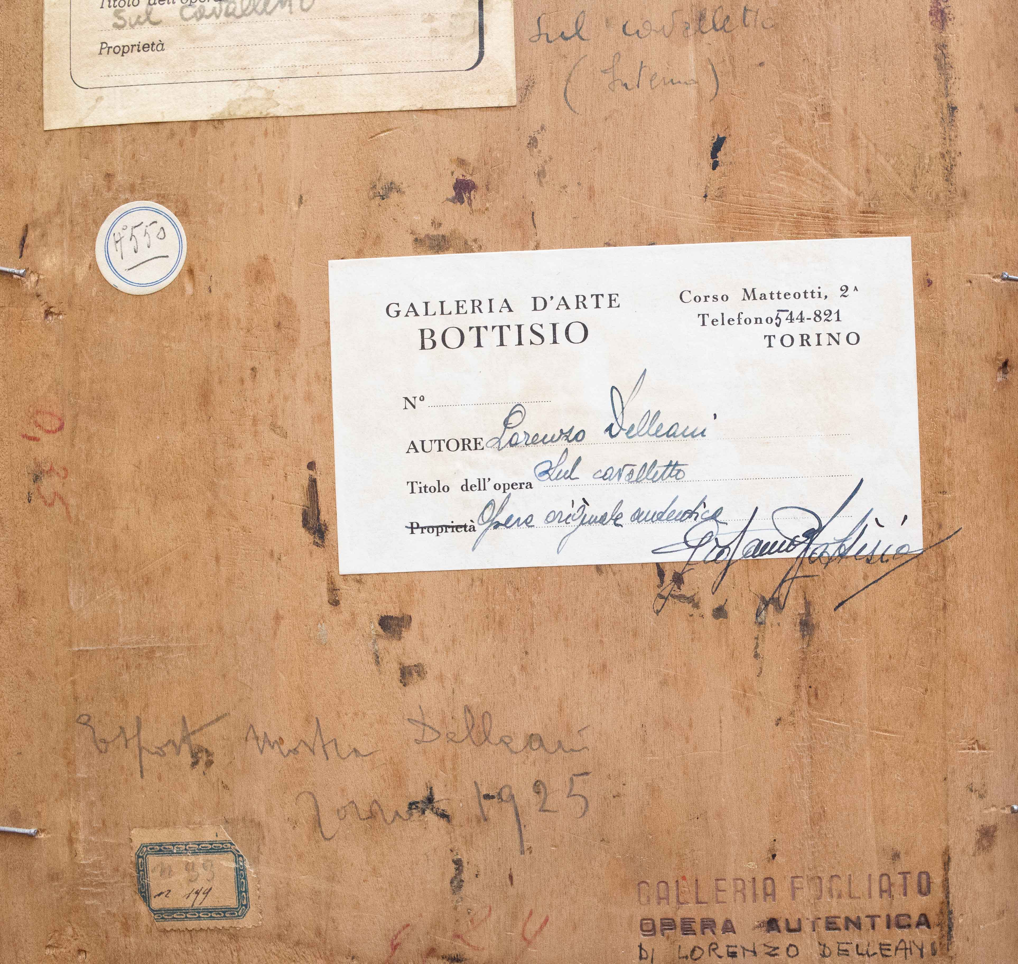 Sul retro del dipinto sono presenti etichette che testimoniano il passaggio dell'opera attraverso diverse gallerie torinesi: