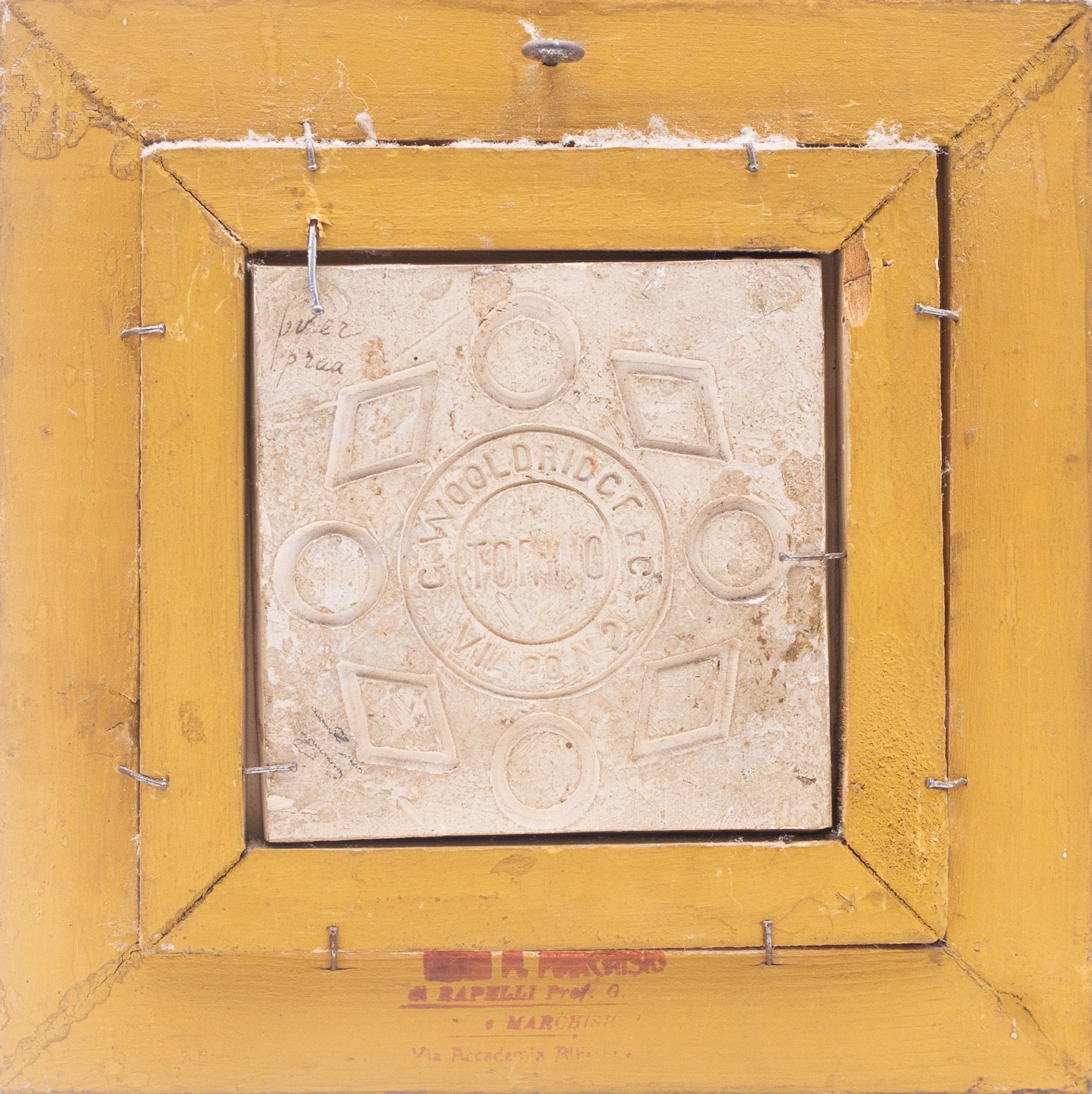| Epoca: | Fine '800 | Misure: | In cornice H 20 x L 20 x P 3 / Piastrella H 10 x L 10 cm | |